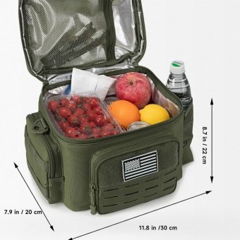 El objetivo de una bolsa de almuerzo táctica es que puedas transportar comidas, snacks y bebidas manteniéndolos a la temperatura adecuada y bien organizados. Con secciones aisladas para conservar el calor o el frío, estas bolsas son ideales tanto para días calurosos como para ambientes laborales fríos.Ejemplo: Imagina que después de horas de trabajo al aire libre, abres tu bolsa táctica y encuentras tu sándwich aún fresco, el agua fría y la comida en perfecto estado gracias a su eficaz aislamiento.