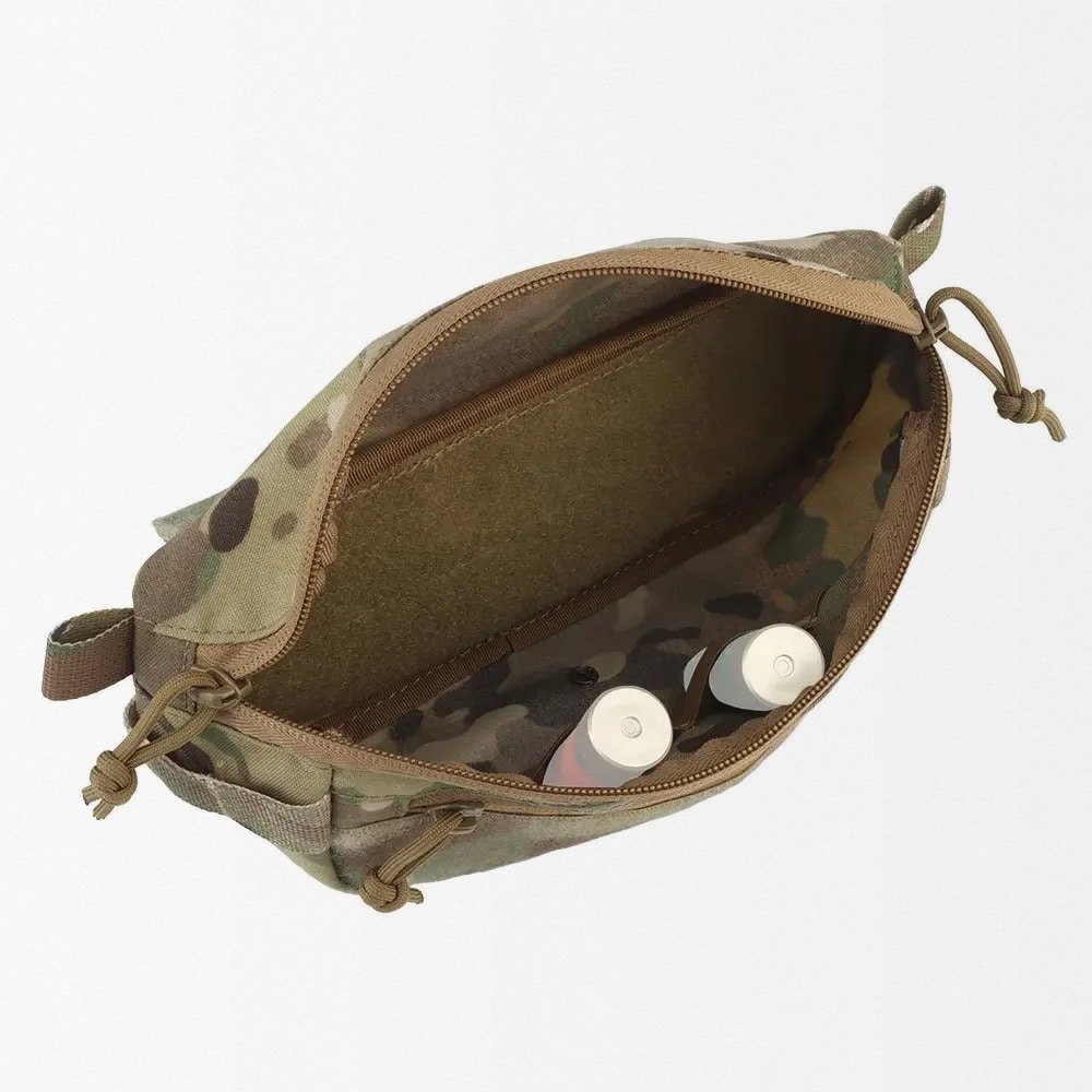 Mejora tu equipamiento táctico con esta bolsa multifuncional de nylon resistente. Perfecta para actividades en equipo o juegos tácticos, cuenta con doble cremallera para acceso rápido con una mano y superficie de velcro con bandas elásticas para asegurar tus objetos. Se adapta como bolsa colgante o riñonera, ideal para cualquier misión. Disponible en varios colores.