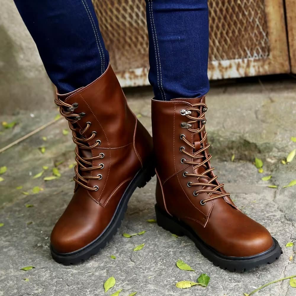 Botas de combate de cuero marrón resistentes para aventuras invernales