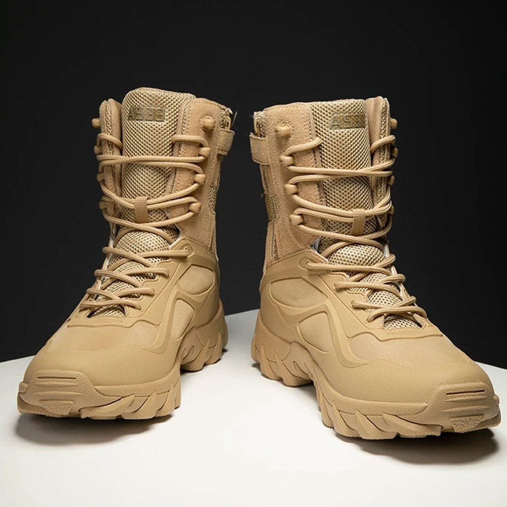 Domina los terrenos más duros del invierno con estas Botas de Combate Ligeras en color desierto. Pensadas para amantes de la aventura y profesionales militares, su diseño con malla transpirable garantiza una óptima ventilación, mientras que la suela de goma robusta ofrece un agarre excepcional. Disfruta de una comodidad y estabilidad incomparables, ya sea en paisajes agrestes o condiciones exigentes.
