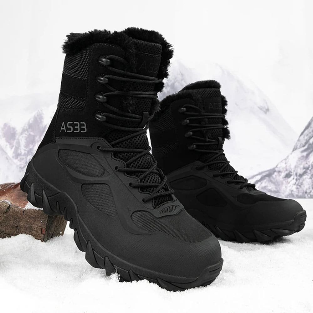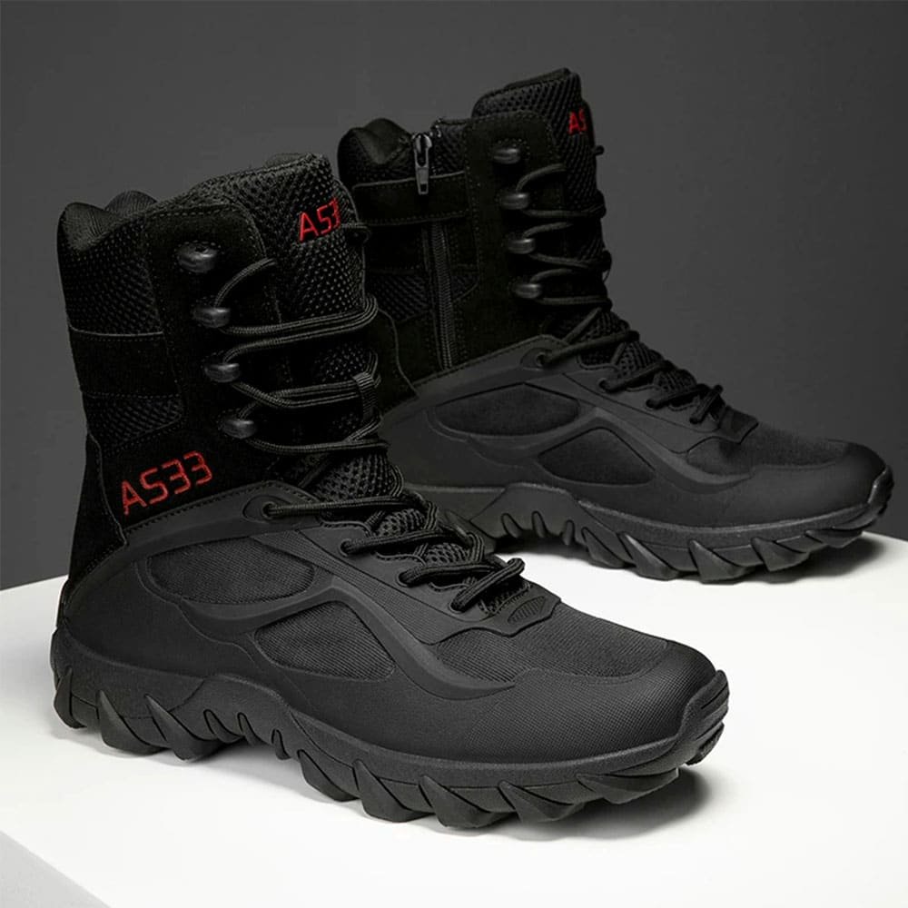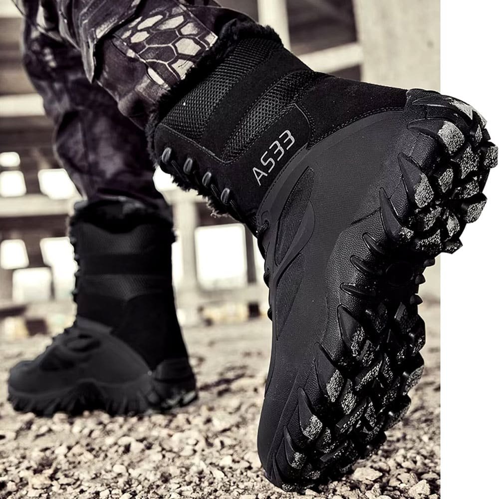 Enfrenta el frío con nuestras Botas Tácticas de Combate Ligeras, diseñadas para los terrenos más duros del invierno. Con su suela de goma resistente y forro de malla transpirable, garantizan un agarre óptimo y comodidad. El cierre de cordones asegura un ajuste firme, ideales para aventuras al aire libre y operaciones militares. Disfruta de durabilidad y estilo incomparables en un elegante negro sólido.