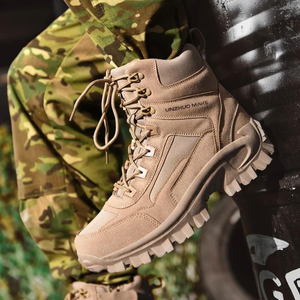 Enfrenta terrenos difíciles con confianza gracias a nuestras botas tácticas de media caña para senderismo. Pensadas para el invierno, estas botas color arena desierto ofrecen comodidad y resistencia incomparables. La suela de goma garantiza agarre en superficies irregulares, mientras que el forro de algodón mantiene tus pies calientes. Perfectas para profesionales militares y amantes del aire libre que buscan fiabilidad y estilo.