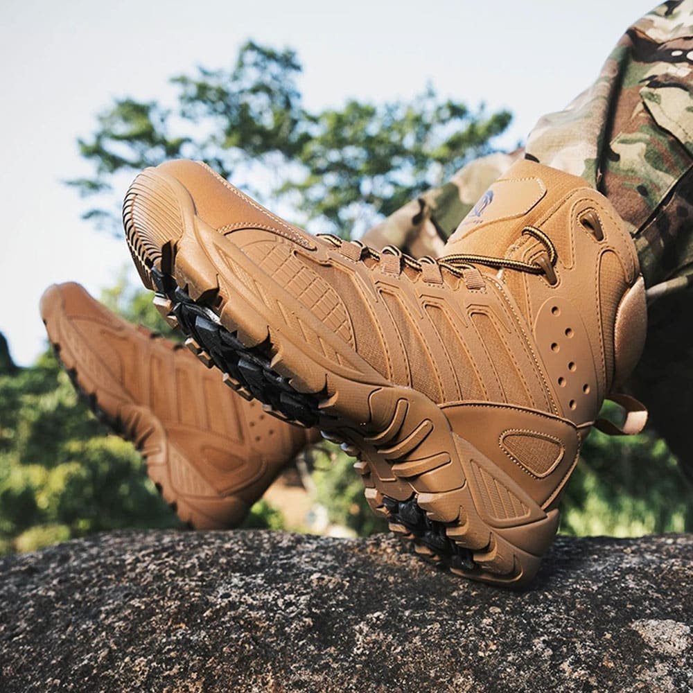Enfrenta la naturaleza con confianza con nuestras Botas tácticas de senderismo en color coyote. Pensadas para aventuras en primavera y otoño, cuentan con una suela de goma resistente que ofrece un agarre excepcional y un forro de malla transpirable para máxima comodidad. Ideales para senderismo y misiones tácticas, brindan soporte fiable y resistencia en entornos difíciles.