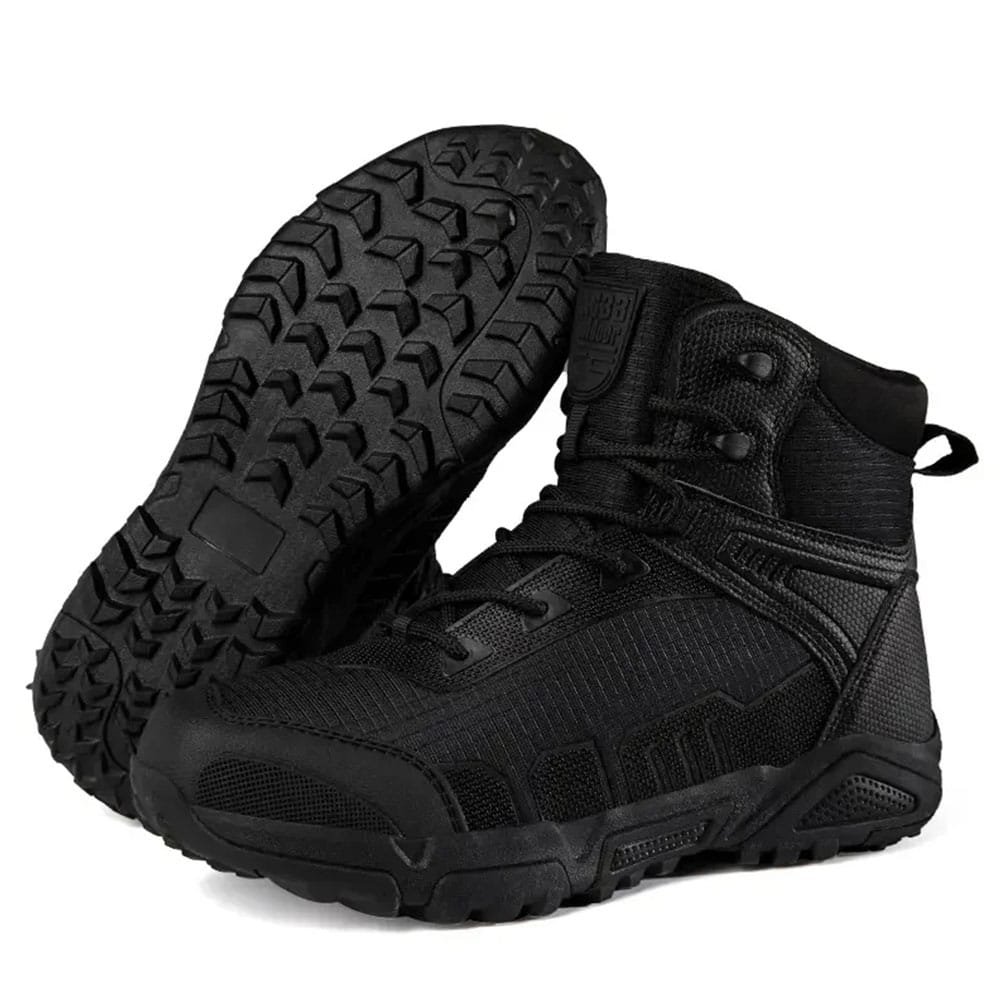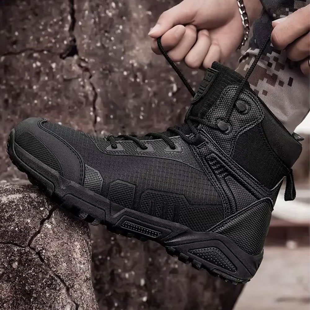 Domina los paisajes más exigentes del verano con nuestras botas tácticas de media caña en negro. Fabricadas en cuero sintético y PU, estas botas artesanales ofrecen un agarre firme gracias a su suela de goma. Ideales para aventuras en el desierto, brindan comodidad y resistencia para que nada detenga tu misión.