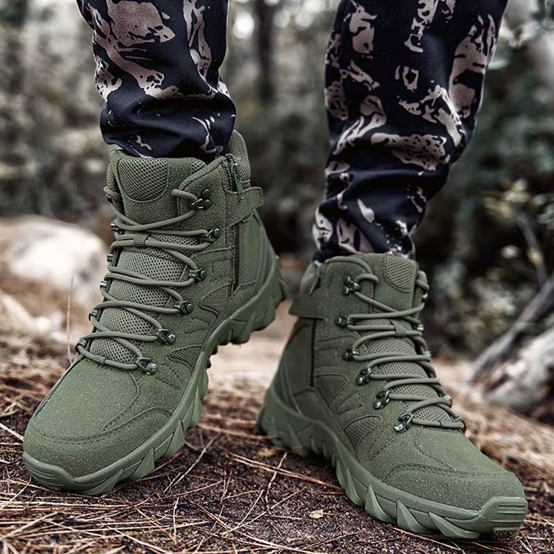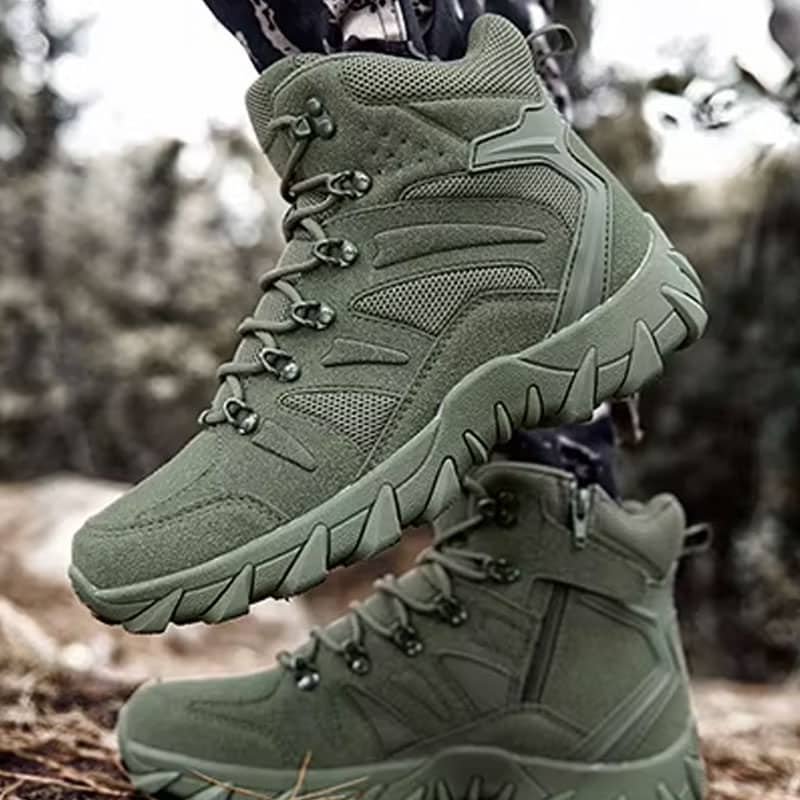 Diseñadas para aventuras al aire libre exigentes, estas botas tácticas de senderismo son ideales para condiciones invernales, proporcionando calor y estabilidad en todo tipo de terrenos. El cierre de cordones garantiza un ajuste firme, mientras que la suela de goma asegura una tracción óptima. Disponibles en un versátil verde oliva, combinan funcionalidad y estilo para cualquier amante de la naturaleza.