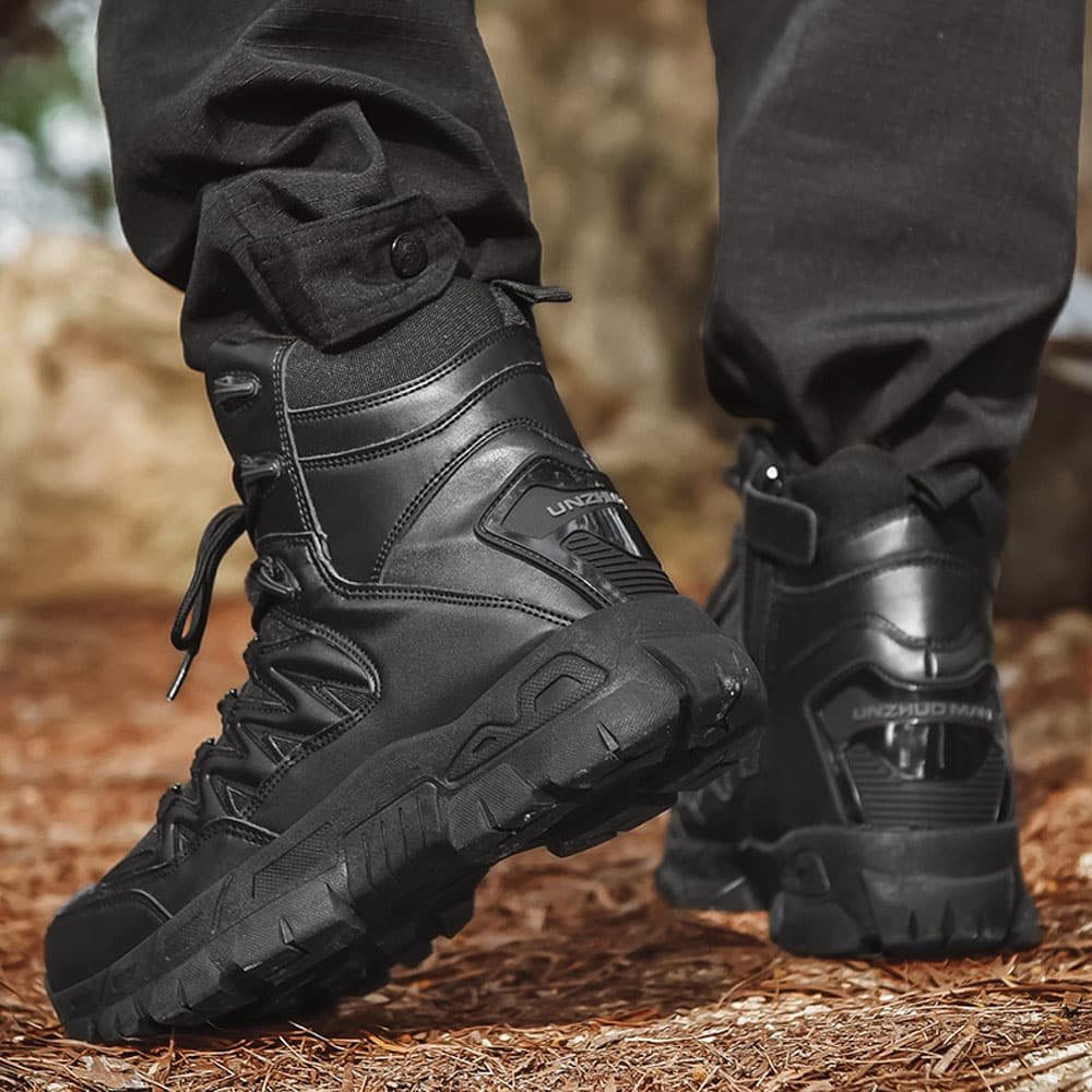 Enfrenta los terrenos más duros del invierno con nuestras Botas Tácticas de Trekking. Con caña forrada en piel y suela de goma antideslizante, estas botas ofrecen calor y agarre excepcionales. El cierre de cordones garantiza un ajuste firme, mientras que el diseño con patrón vichy aporta un toque de estilo. Perfectas para tus aventuras al aire libre en climas fríos.