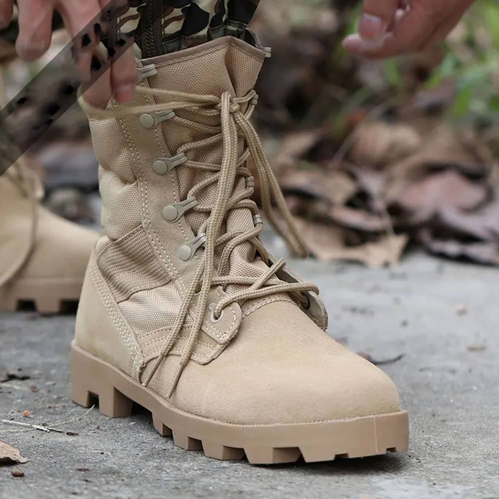 Botas duraderas de ante color arena para uso táctico