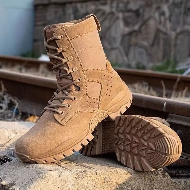 Pensadas para aventuras de verano, estas botas tácticas transpirables son perfectas tanto para amantes de la naturaleza como para profesionales. La parte superior de cuero genuino y la suela de goma garantizan durabilidad en terrenos difíciles, mientras que la altura media ofrece soporte adicional. Ideales para senderismo, camping o uso militar, combinan funcionalidad y estilo a la perfección.