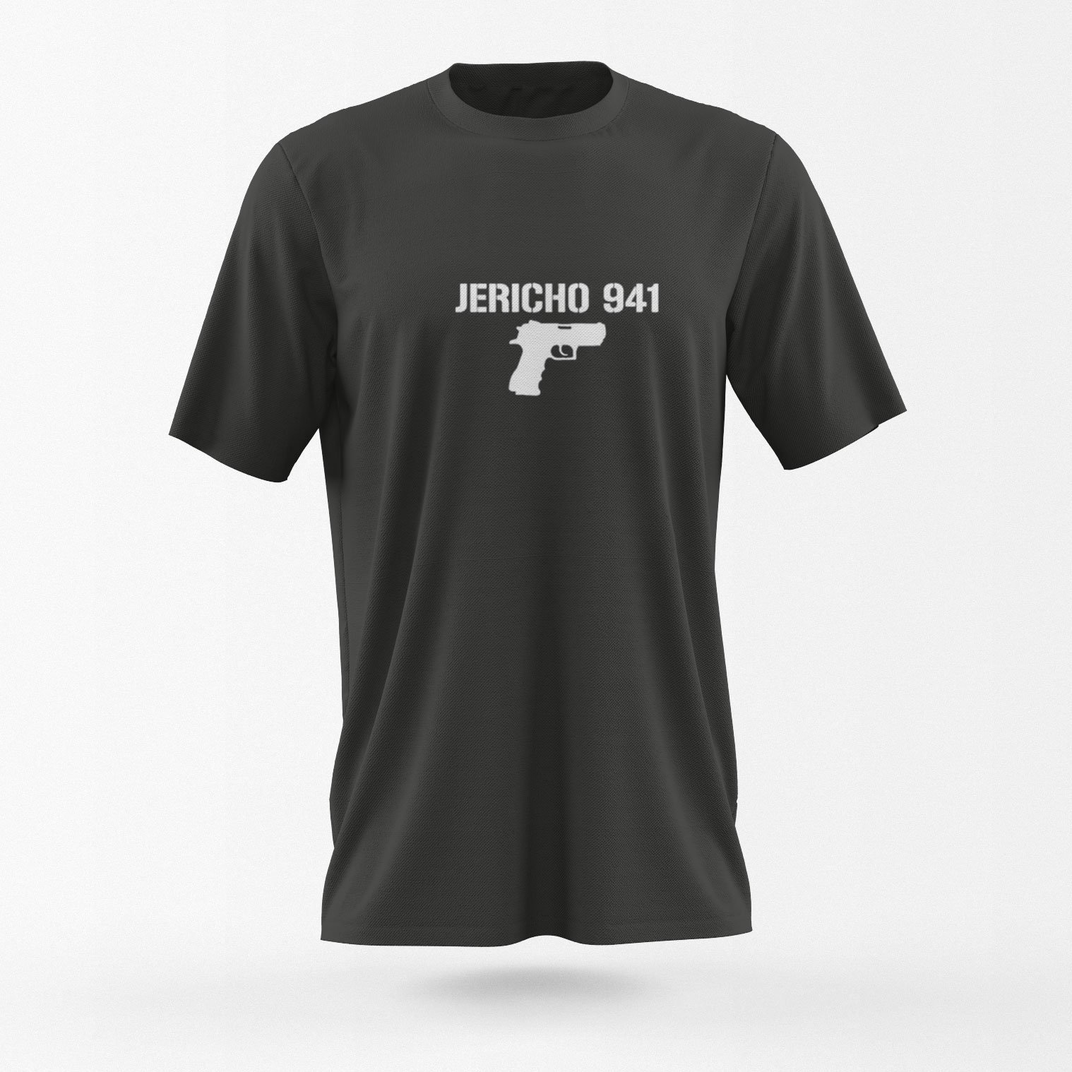 Celebra tu pasión por las armas con nuestra camiseta Jericho 941. Este diseño rinde homenaje a la icónica pistola Jericho 941, mostrando tu aprecio por su diseño y su impacto en la historia armamentística. Lúcela con orgullo y destaca con estilo.