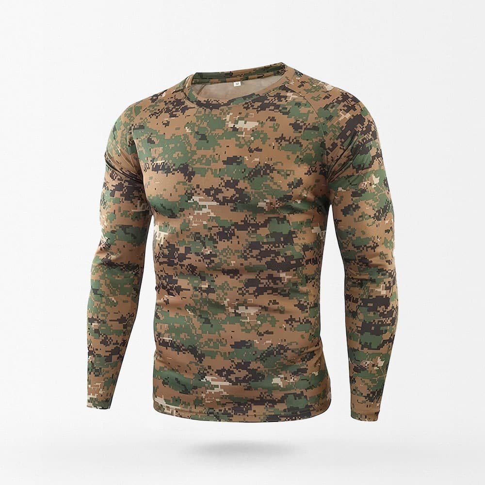 Disfruta de la naturaleza con esta camiseta táctica de manga larga en camuflaje digital, ideal para primavera y otoño. Su tejido transpirable y de secado rápido en poliéster te ofrece comodidad en cualquier actividad, desde senderismo hasta caza o uso diario. Disponible en múltiples tallas, esta prenda versátil se adapta a distintos terrenos y condiciones climáticas, integrándose perfectamente en el entorno natural.