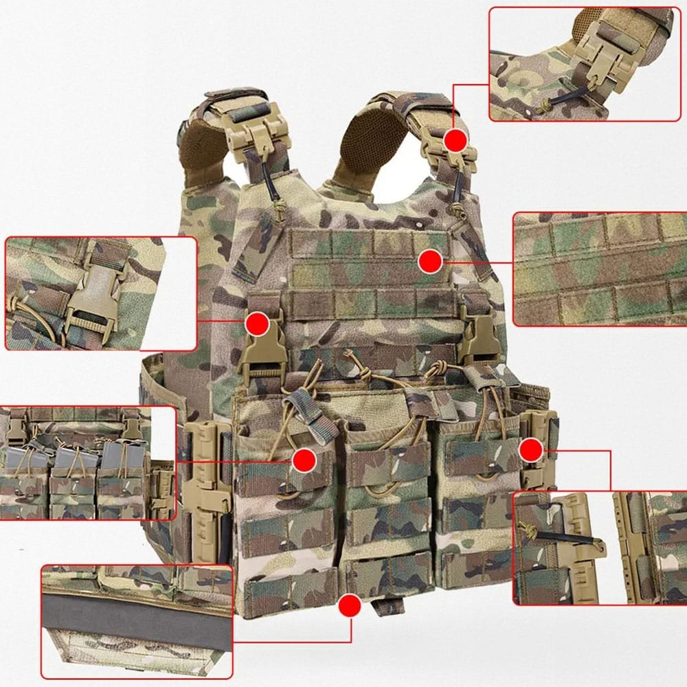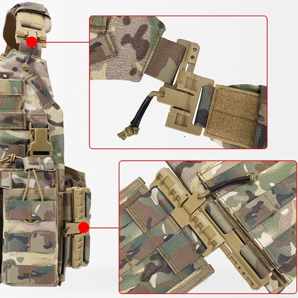 Diseñado para profesionales y amantes de actividades al aire libre, este chaleco portaplacas táctico con portacargadores combina durabilidad y versatilidad. Fabricado en poliéster 500D repelente al agua, cuenta con un sistema de liberación rápida para un despliegue ágil. Con portacargadores integrados y compatibilidad MOLLE, es perfecto para entornos dinámicos. Disponible en varios colores, te prepara para cualquier misión.