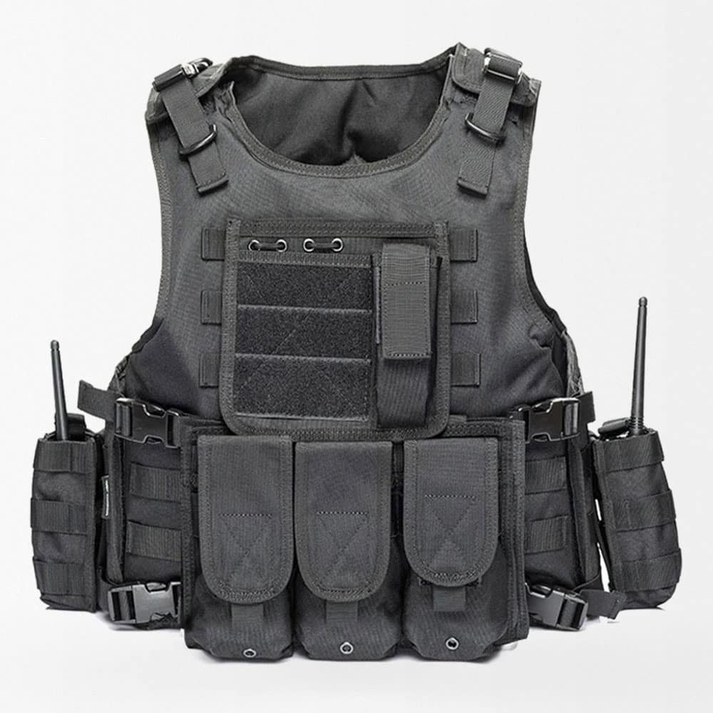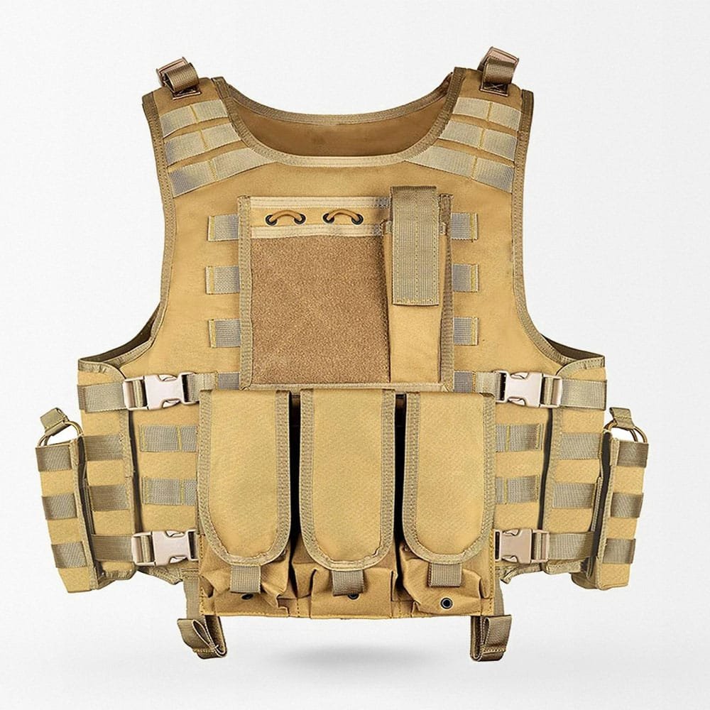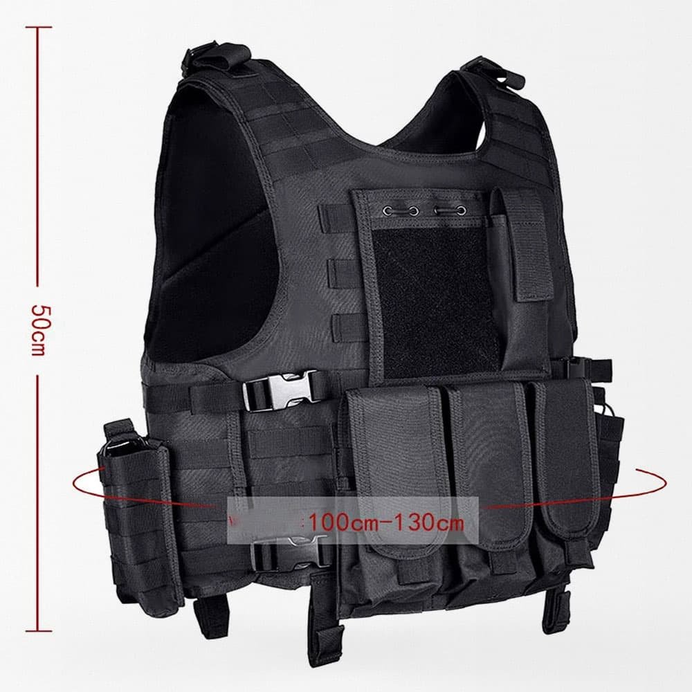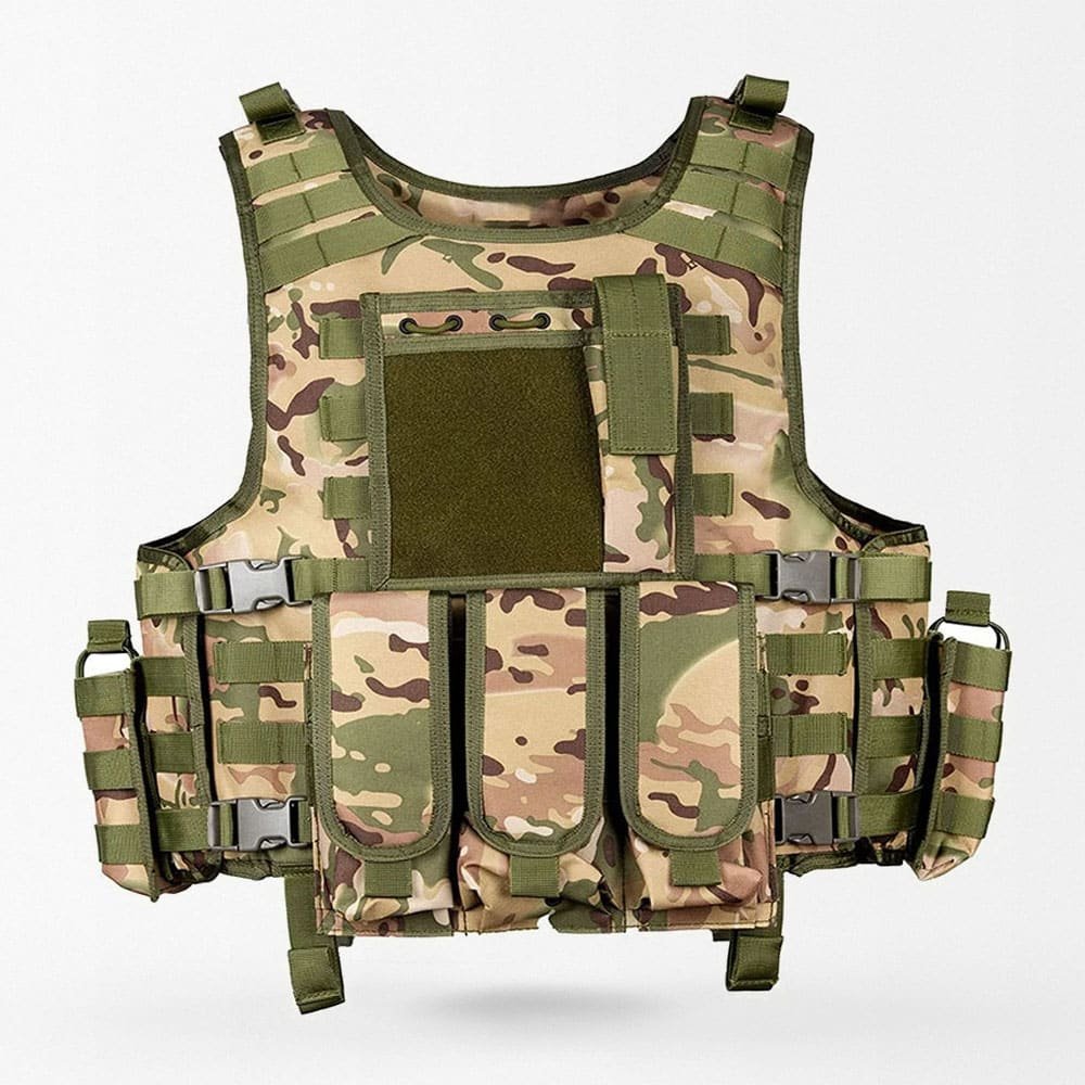 Prepárate con este chaleco de nivel militar, diseñado para uso durante todo el año en escenarios tácticos, de caza y airsoft. Fabricado en resistente material 600D Oxford, cuenta con sistema MOLLE para añadir fácilmente tu equipo, ajuste personalizado y bolsas desmontables para almacenamiento adaptable. Disponible en varios colores para adaptarse a tu estilo y necesidades de misión.
