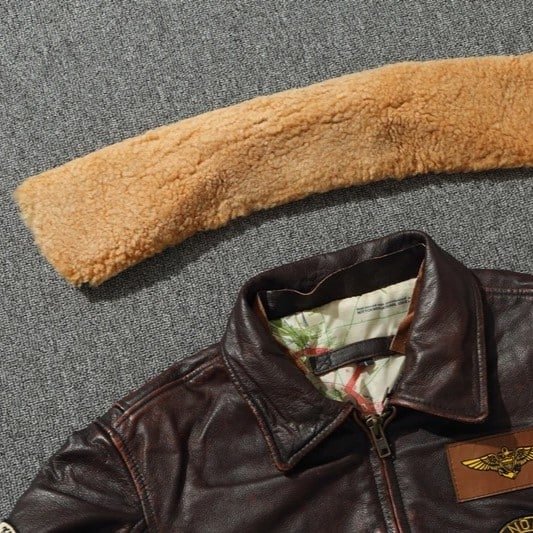 Perfecta para otoño e invierno, la chaqueta de aviador G1 de cuero es tu aliada para salidas casuales. Fabricada con piel de vacuno resistente y forro grueso de poliéster, cuenta con cuello vuelto y parte desmontable para un estilo versátil. Ideal para el frío, esta chaqueta combina funcionalidad con un estilo militar robusto.