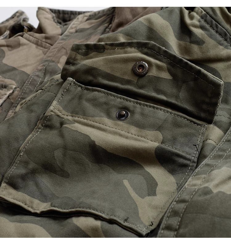 Descubre la combinación perfecta entre estilo y funcionalidad con la chaqueta táctica M65 de invierno. Perfecta para tus salidas en otoño e invierno, esta chaqueta con capucha cuenta con múltiples bolsillos para mayor practicidad. Su tejido resistente de algodón y poliéster garantiza abrigo y comodidad, ideal para actividades al aire libre en climas fríos. Disponible en un clásico patrón camuflado, complementa a la perfección cualquier look táctico.