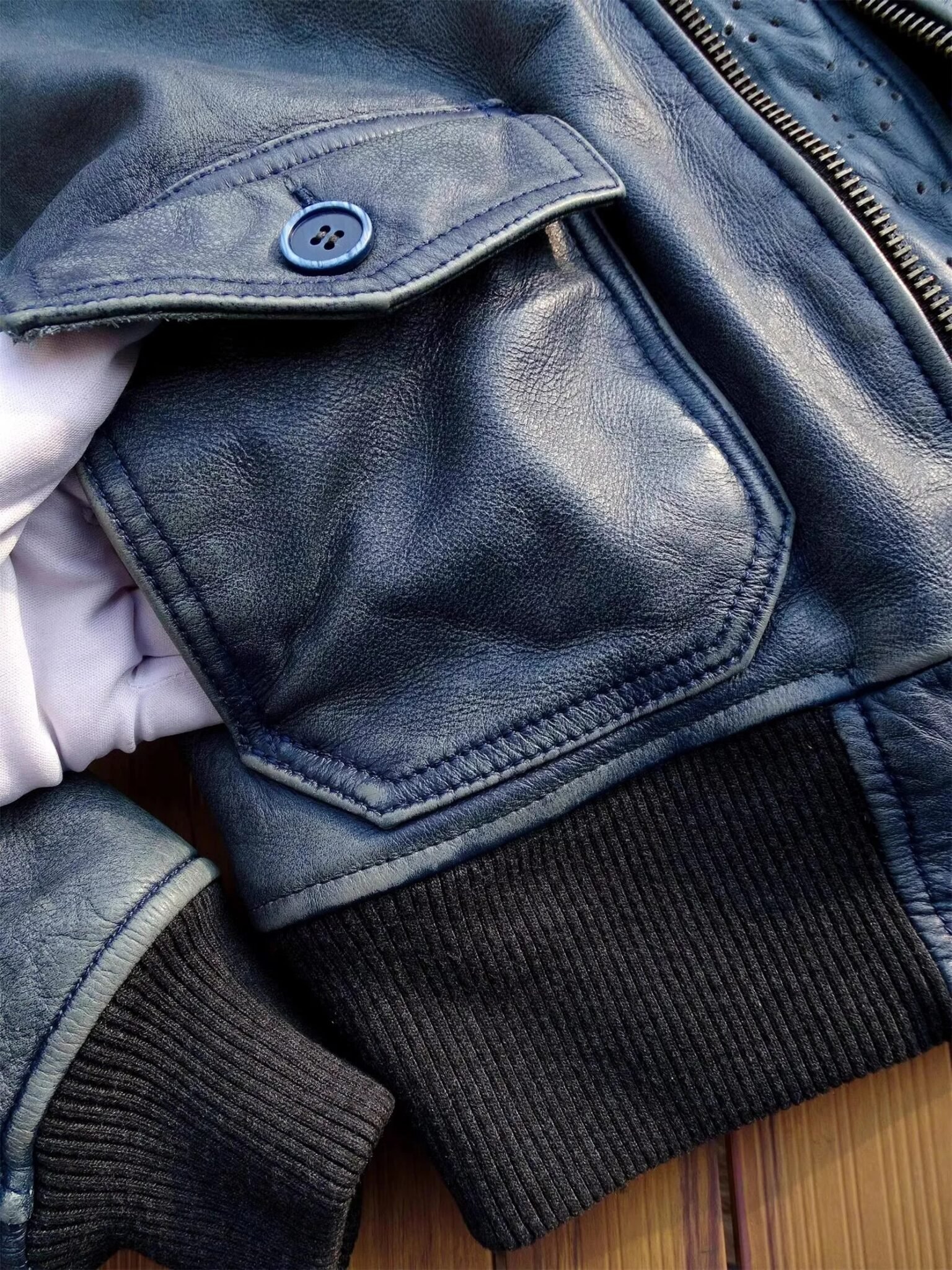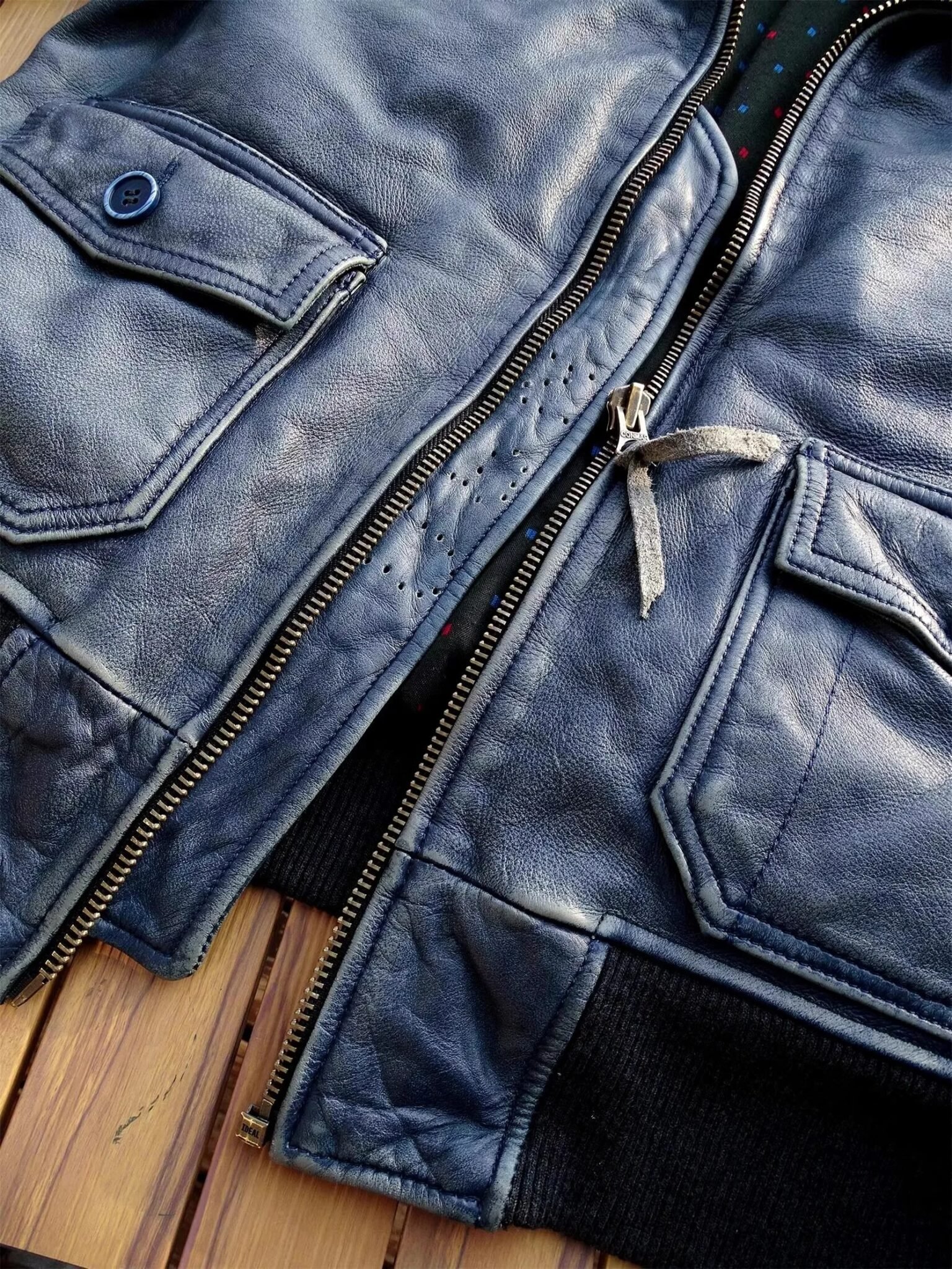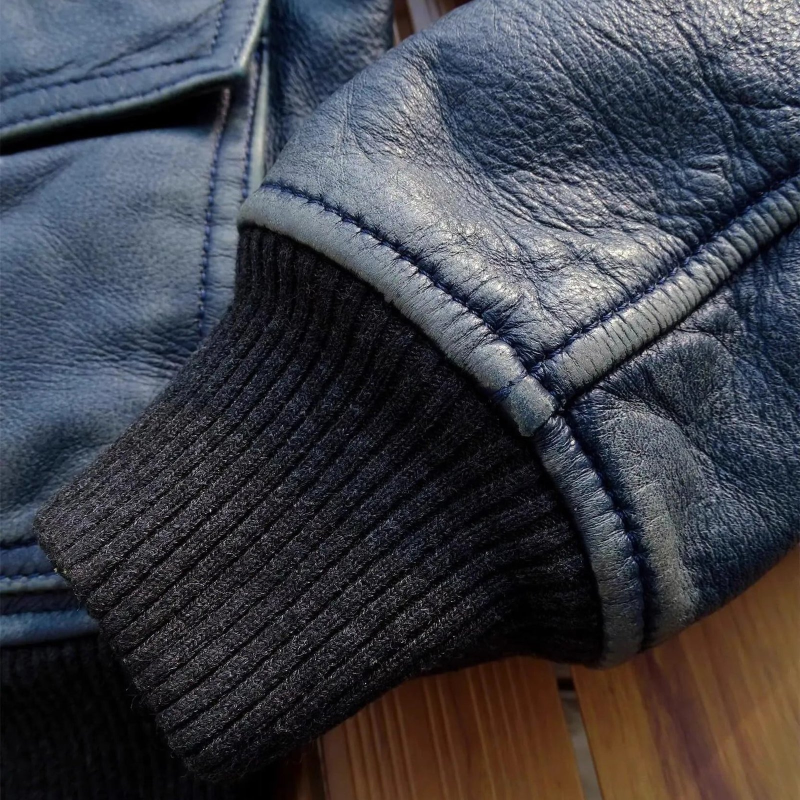 Disfruta del encanto vintage de la chaqueta de vuelo G1, perfecta para tus salidas en otoño e invierno. Fabricada en cuero vacuno genuino con forro de algodón, cuenta con cuello abatible desmontable y prácticos bolsillos. Su diseño sólido y grosor estándar la hacen ideal para temperaturas bajas. Disponible en colores clásicos.