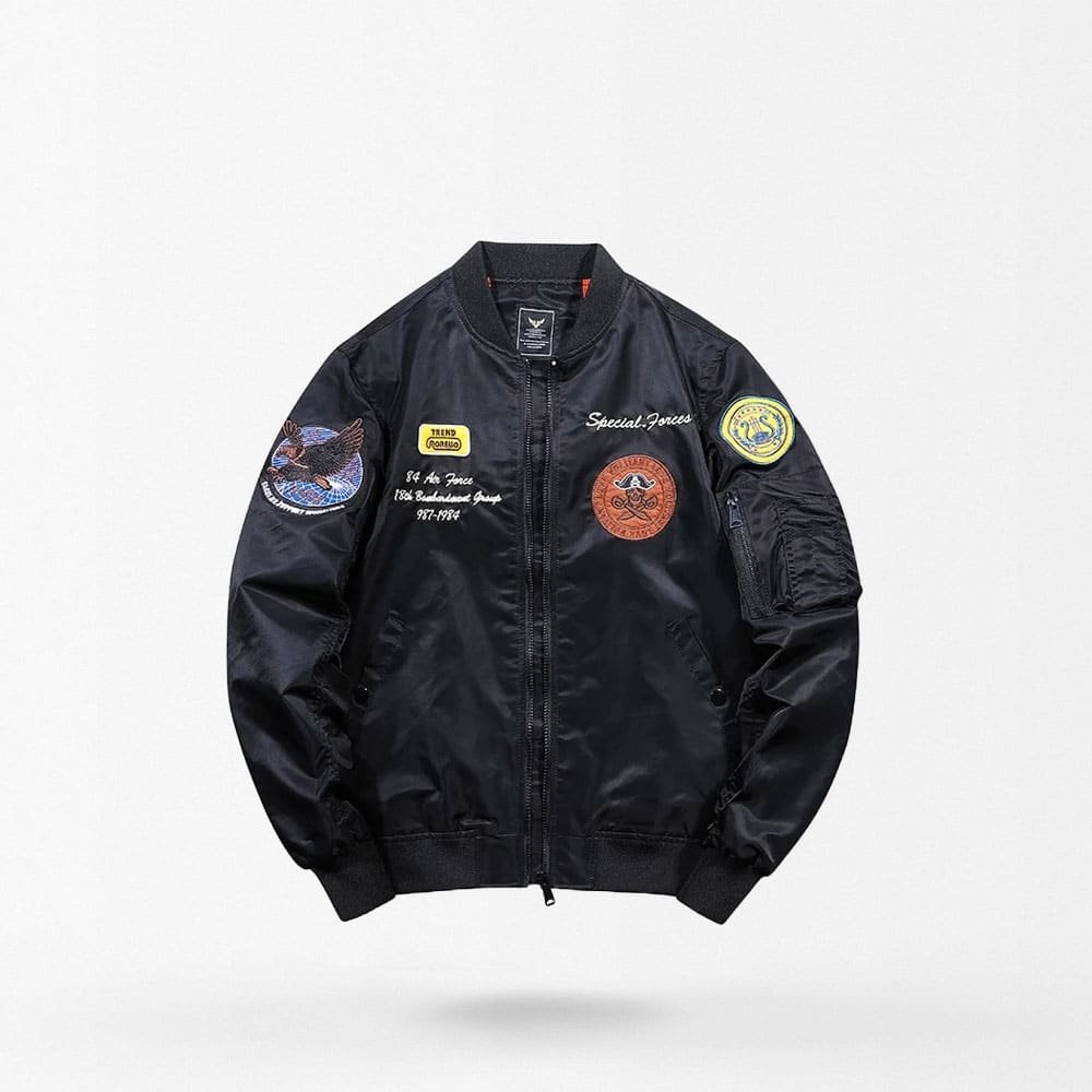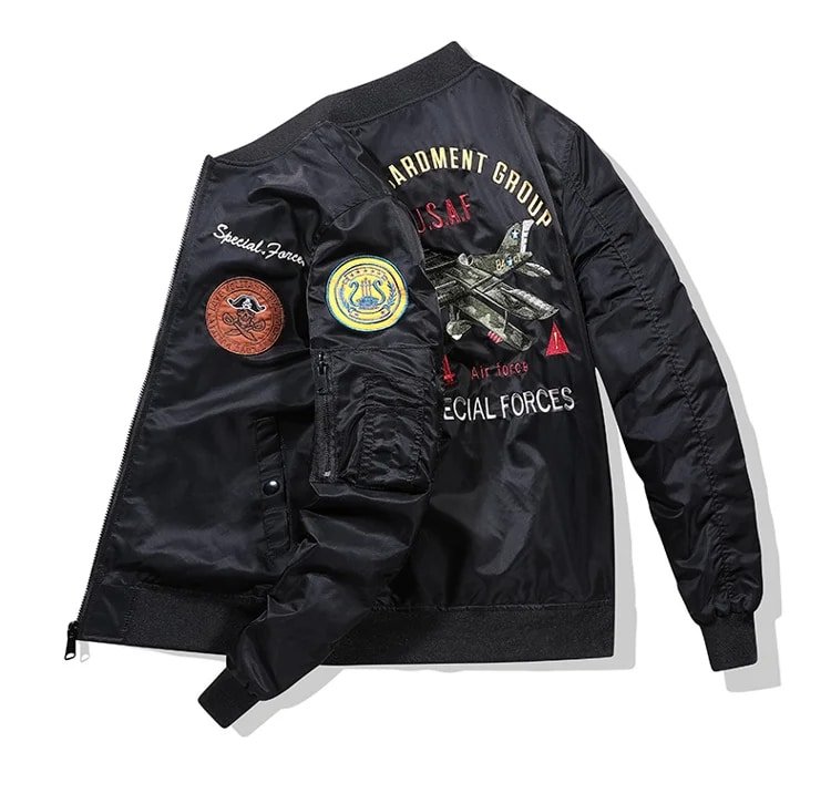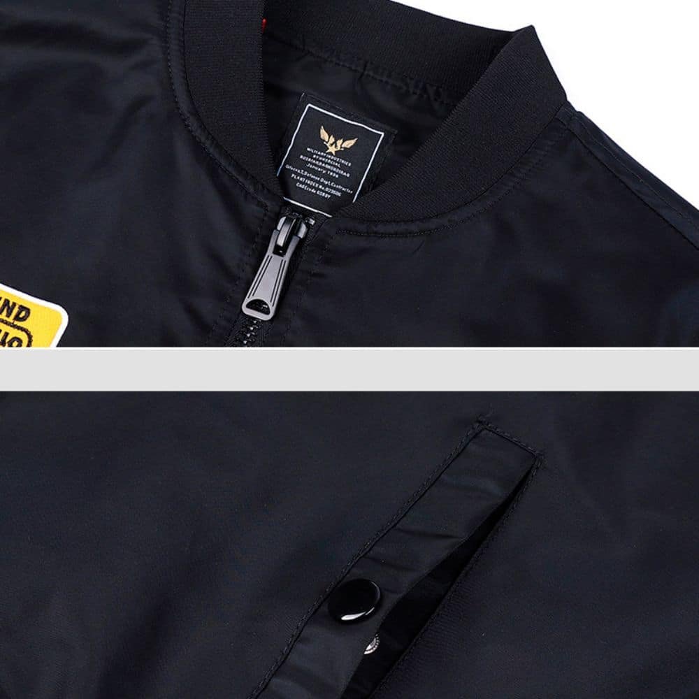 La chaqueta de vuelo MA-1 negra de la Fuerza Aérea de EE. UU. es la prenda perfecta para las estaciones de transición. Ideal para salidas casuales o viajes, su tejido ligero de poliéster ofrece comodidad sin volumen. Disponible en un elegante negro, combina fácilmente con cualquier conjunto, convirtiéndola en una opción estilosa para el clima impredecible.