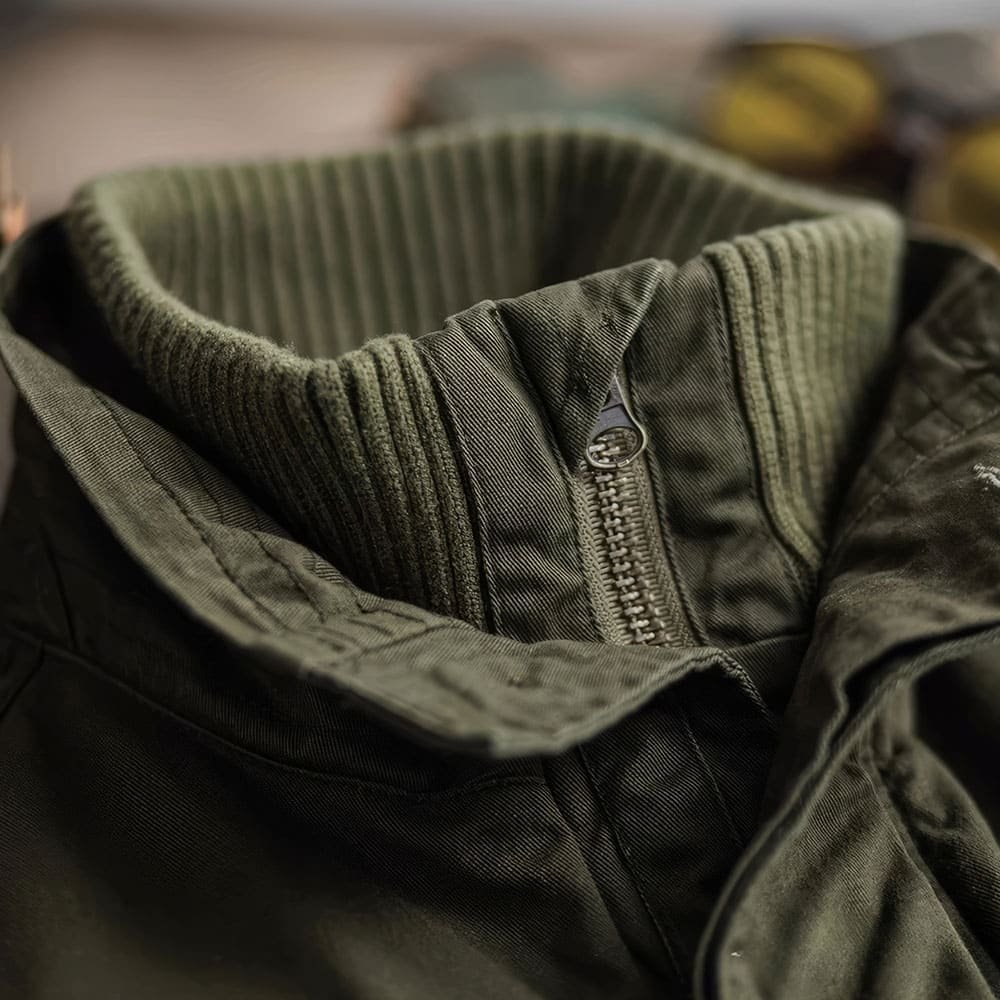 - Cuello Abatible: Añade un estilo militar clásico que realza el diseño de la chaqueta.