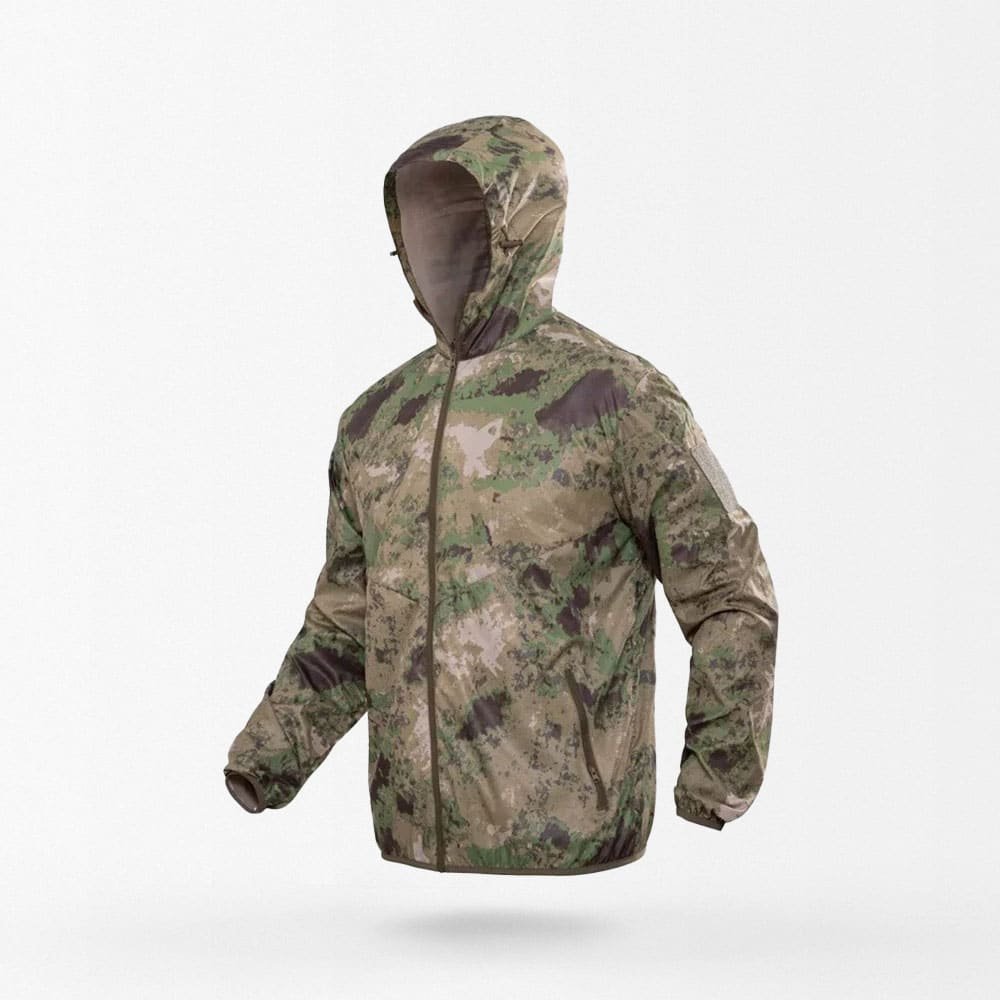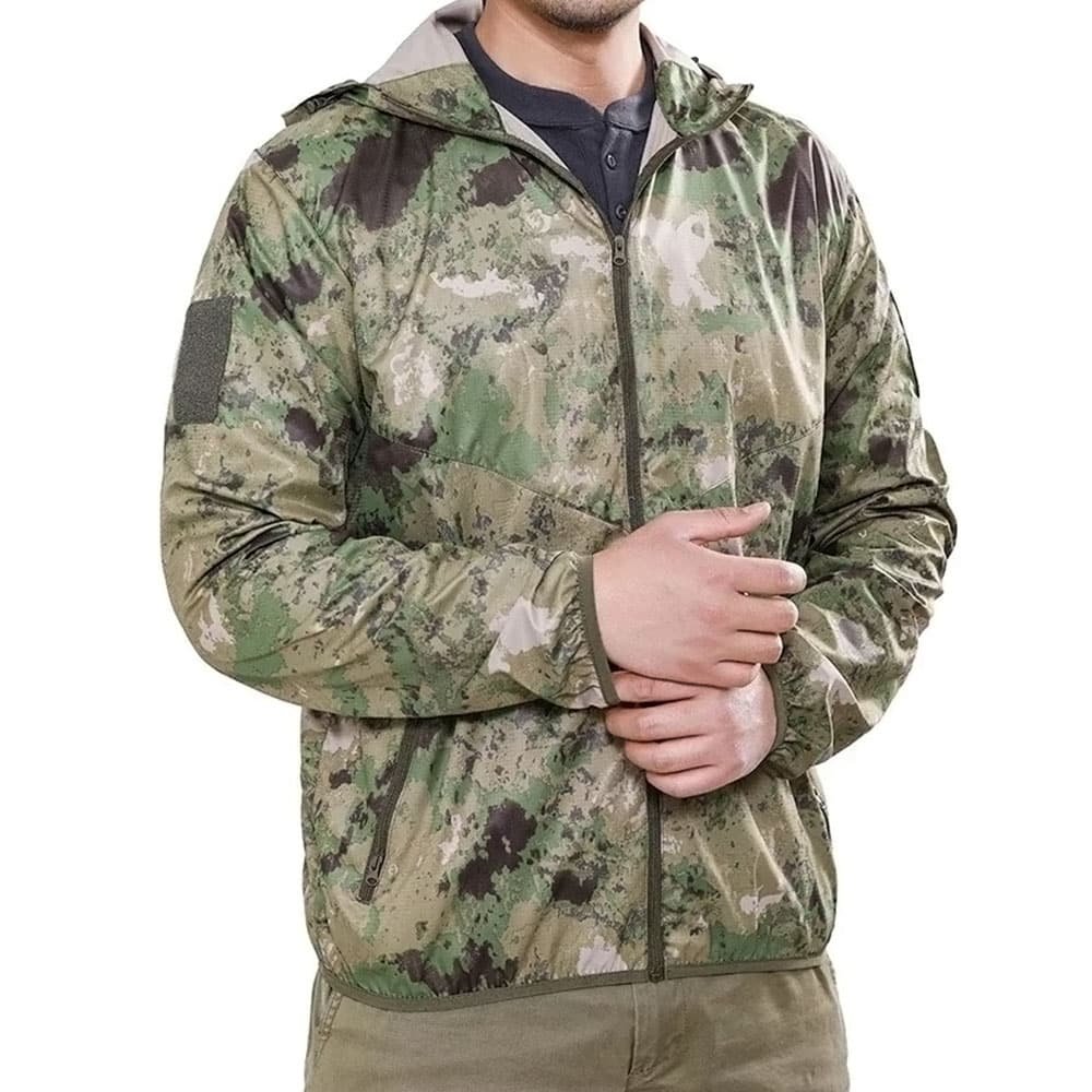 Mantente seco y con estilo con esta chaqueta impermeable ligera de camuflaje, ideal para salidas de verano. Ya sea para senderismo, pesca o viajes, su tejido transpirable de poliéster te brinda confort. El patrón camuflado se integra perfectamente en entornos naturales, perfecta para primavera, verano y otoño.