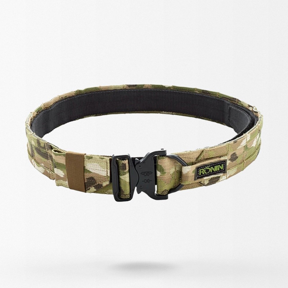 Descubre la durabilidad y versatilidad del cinturón táctico Ronin MOLLE de 5 cm. Diseñado para todas las estaciones, cuenta con hebilla de liberación rápida y compatibilidad MOLLE para asegurar tu equipo. Perfecto para caza y deportes al aire libre, su diseño doble con cinturón interior ofrece estabilidad y comodidad superior.