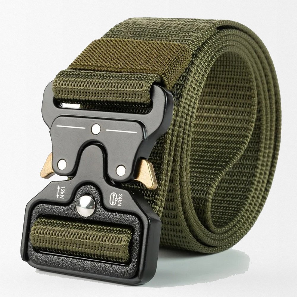 El cinturón táctico de liberación rápida está fabricado con lona duradera y cuenta con una hebilla de aleación de zinc que garantiza un cierre seguro. Perfecto para misiones tácticas o actividades al aire libre durante todo el año. Disponible en colores versátiles como negro, verde y caqui, combina funcionalidad y estilo en cualquier terreno.