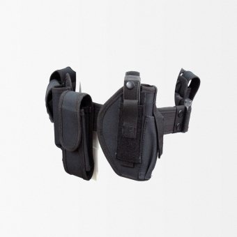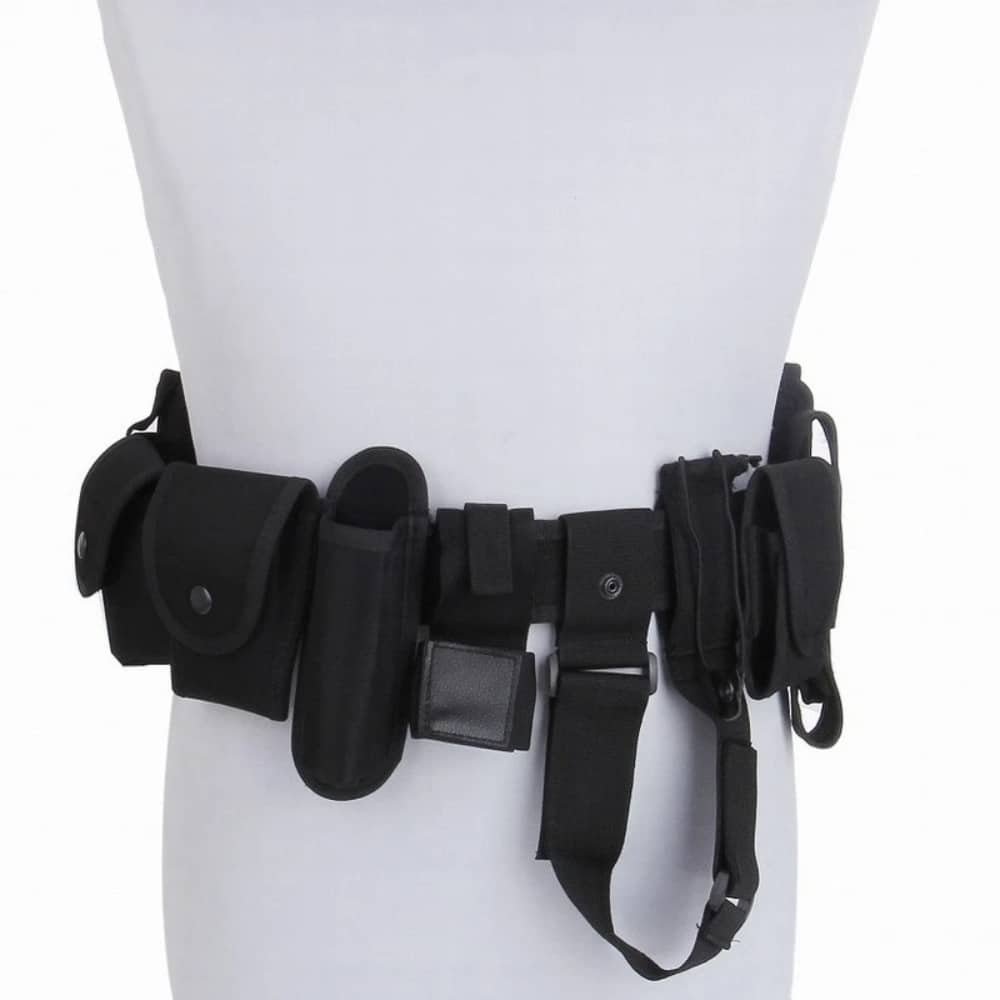 - Con funda para linterna, funda para pistola, porta bastón y funda para esposas