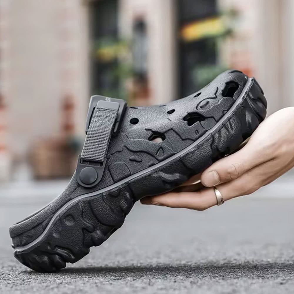 Disfruta de una comodidad y durabilidad incomparables con nuestros Crocs tácticos negros. Pensados para actividades al aire libre en verano, estos zuecos con diseño sólido y suela baja de EVA garantizan un ajuste perfecto y resistencia en cualquier terreno. Ideales para el ocio, serán tu aliado confiable en cada escapada.
