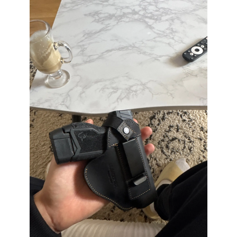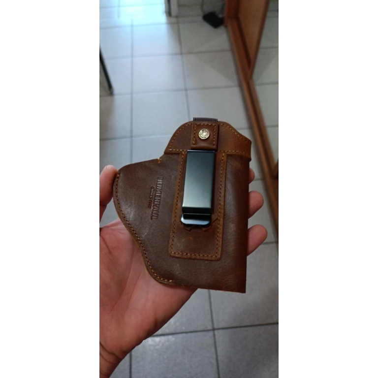 Disfruta de un porte oculto y cómodo con nuestra funda IWB de cuero sintético de alta calidad. Fabricada para ofrecer durabilidad y un ajuste perfecto, está disponible en café, marrón claro y negro, combinando a la perfección con tu vestimenta para un porte diario totalmente discreto.