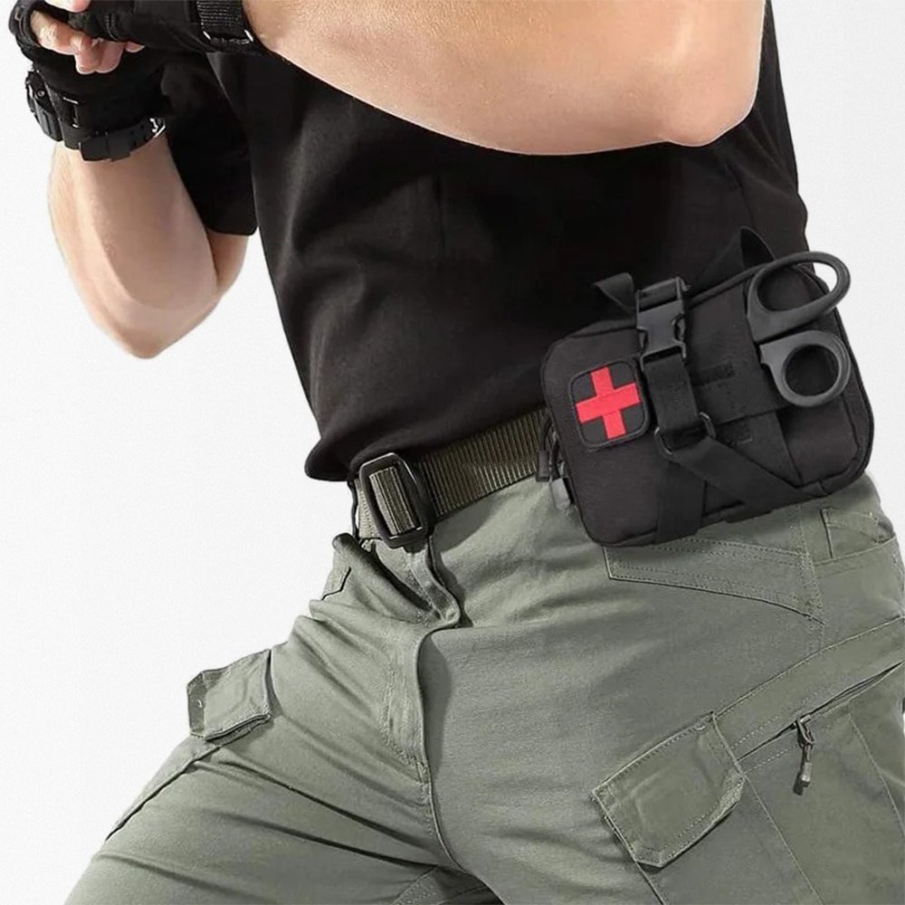 Esta funda médica táctica de extracción rápida, fabricada en resistente nylon Oxford 600D, es imprescindible para la caza y actividades outdoor. Se adapta a cualquier sistema MOLLE para tener a mano tus suministros de primeros auxilios. Disponible en colores versátiles como Negro, Barro, CP y Verde Ejército, es perfecta para cualquier terreno y condición climática.