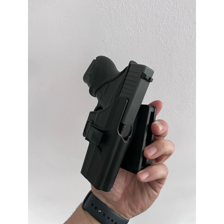 Disfruta de una sujeción segura con la funda OWB para Glock 43X, fabricada en polímero resistente y diseñada para uso diestro. Su plataforma paddle garantiza estabilidad, mientras que el soporte para cinturón se adapta perfectamente a cinturones tácticos de 2 pulgadas. Perfecta para operaciones tácticas o porte diario, esta funda está hecha a medida para la serie G43 y G43X, ofreciendo un ajuste perfecto y un desenfunde rápido.