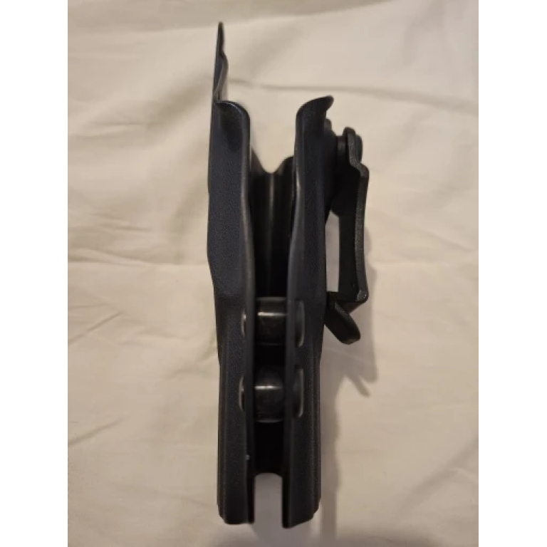 Fabricada en Kydex resistente, esta funda para diestros ofrece un transporte seguro y discreto gracias a su clip para cinturón. Su moldeado bilateral garantiza un ajuste perfecto, mientras que la retención y la inclinación ajustables permiten personalizar la presión y la posición de extracción. Ideal para porte oculto, esta funda combina fiabilidad con una fabricación experta.