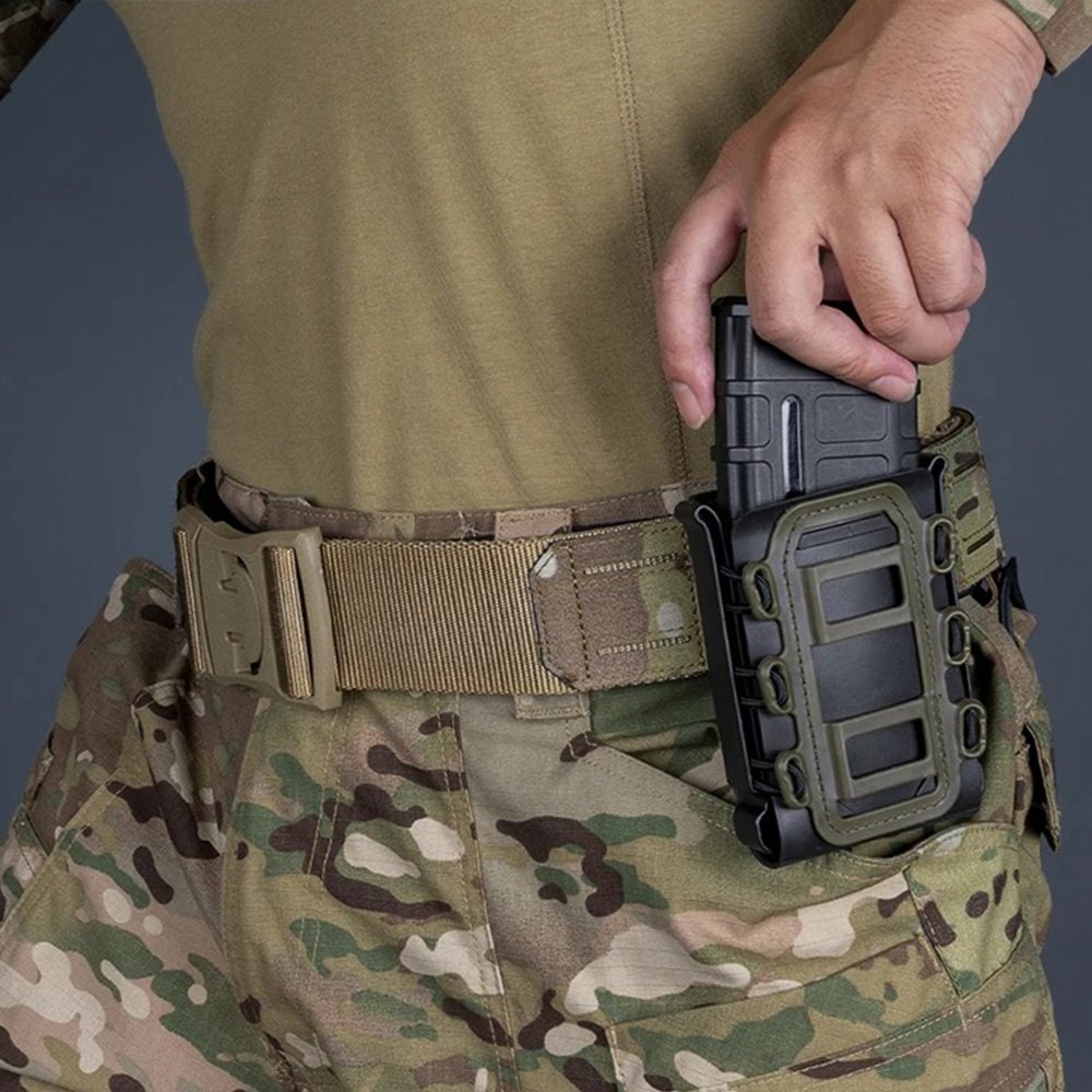 Mejora tu equipamiento táctico con la funda rápida para cargador de 7,62 mm IDOGEAR, fabricada en nylon plástico resistente. Diseñada para recargas rápidas, su compatibilidad con MOLLE permite una integración perfecta en chalecos y mochilas. Disponible en cuatro colores tácticos, esta funda es imprescindible para cualquier operación en campo, ofreciendo acceso rápido y almacenamiento seguro para tus cargadores.