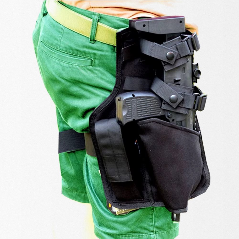 Disfruta de máxima comodidad con esta funda táctica de pierna para MP7, fabricada en nylon 1000D resistente. Cuenta con una correa ajustable con hebilla de liberación rápida y un portacargador integrado, para que tu equipo esté siempre al alcance. Ideal para operaciones tácticas, se adapta fácilmente a la mayoría de cinturones de servicio y es compatible con MP7 y subfusiles de airsoft similares.