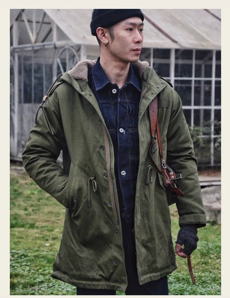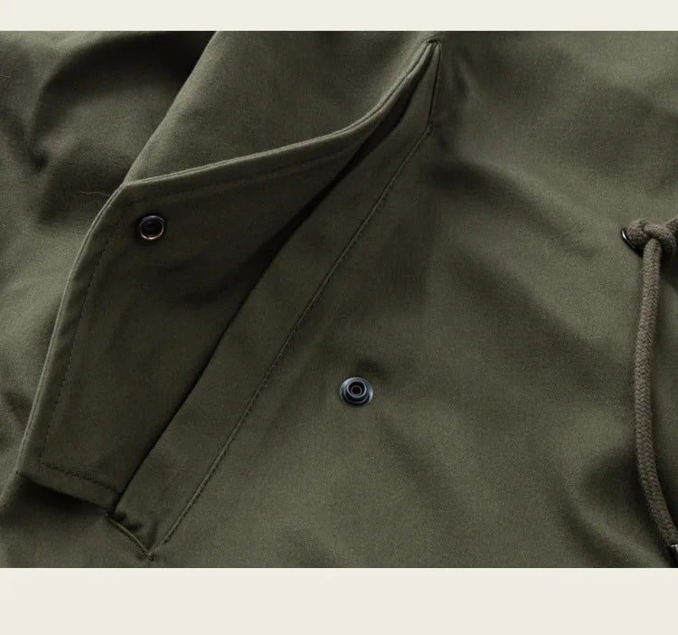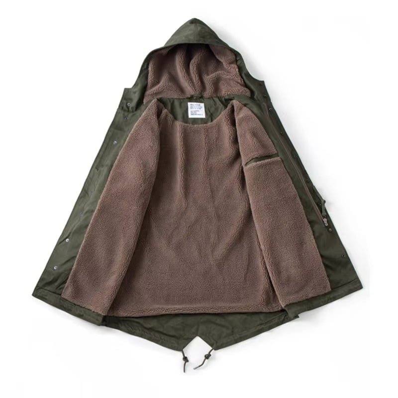 Perfecta para los días frescos de primavera, otoño e invierno, esta gabardina M-51 verde militar combina protección contra el viento y aislamiento térmico con un forro interior de algodón suave. Ideal para camping, senderismo o salidas casuales, ofrece un corte holgado y prácticos bolsillos laterales. Disponible en un tono verde versátil.