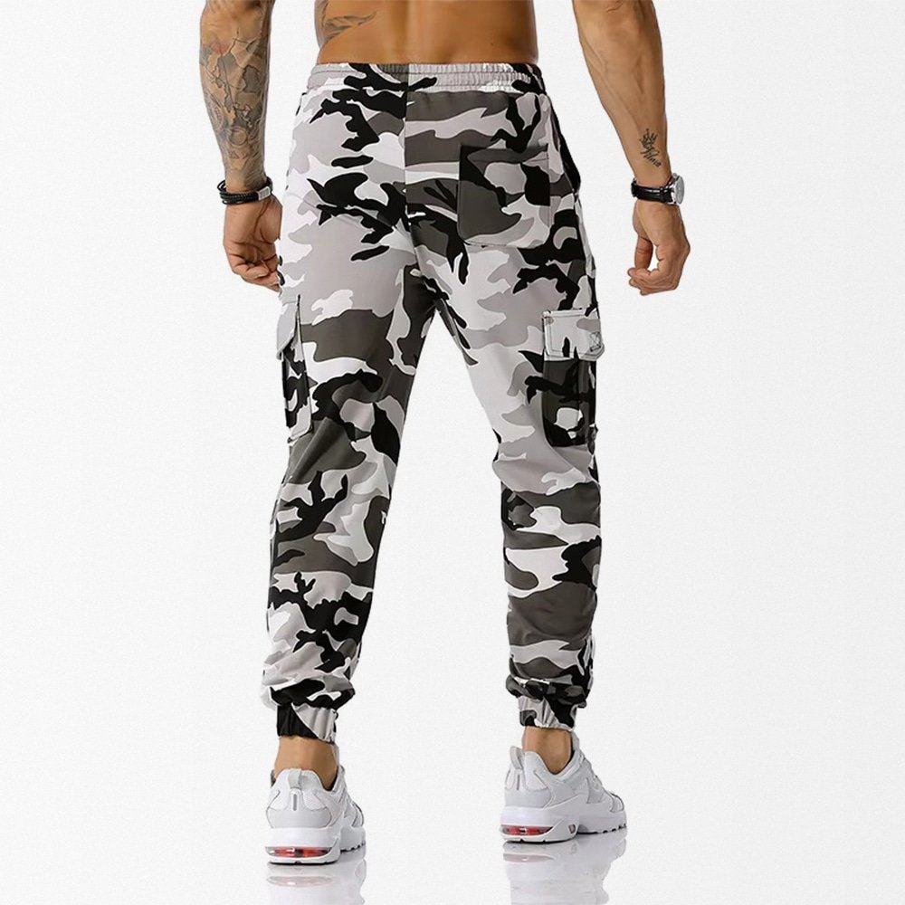 Combinando el estilo urbano con el camuflaje clásico, nuestros joggers camuflaje gris ofrecen un look sofisticado y discreto, ideal para cualquier aventura en la ciudad.