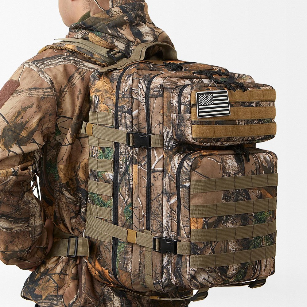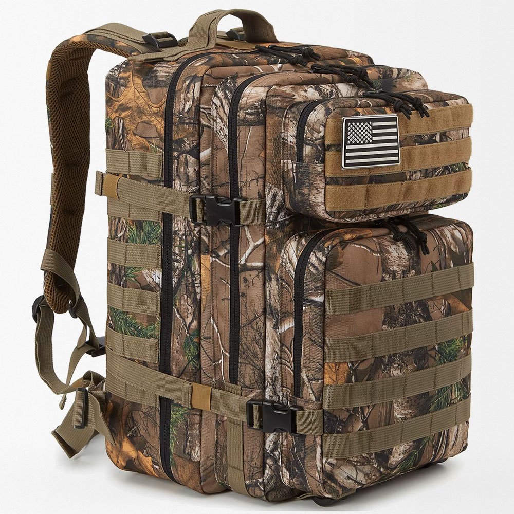 La mochila de caza camuflaje bosque 45L es tu aliada perfecta para aventuras al aire libre. Fabricada en poliéster resistente, ofrece amplio espacio y comodidad para largas jornadas en la naturaleza. Su diseño camuflado te ayuda a pasar desapercibido, integrándote perfectamente en entornos boscosos. Ideal para cazadores y aficionados tácticos que buscan fiabilidad y discreción.