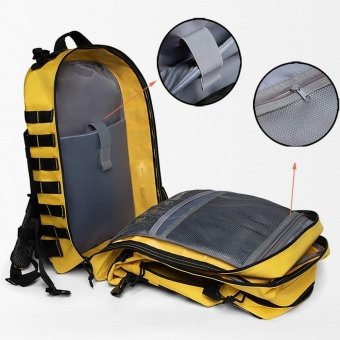 Esta mochila táctica amarilla de 45L, fabricada en poliéster resistente, es perfecta para misiones prolongadas en exteriores. Su color llamativo garantiza visibilidad, mientras que su material duradero soporta condiciones exigentes. Ideal para personal militar y amantes de la naturaleza, combina funcionalidad y estilo para ser tu compañera confiable en cualquier terreno.