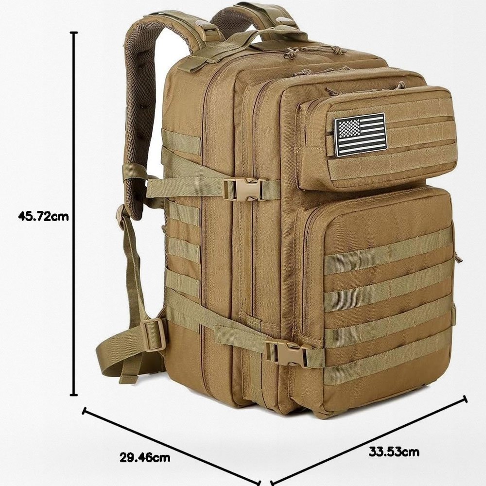 La mochila táctica coyote de 45 L está fabricada en poliéster robusto, garantizando resistencia en terrenos difíciles. Su diseño espacioso permite llevar todo el equipo esencial para largas expediciones, ideal para profesionales militares y aficionados al táctica. Con su color táctico y características prácticas, esta mochila es tu compañera confiable para cualquier aventura.