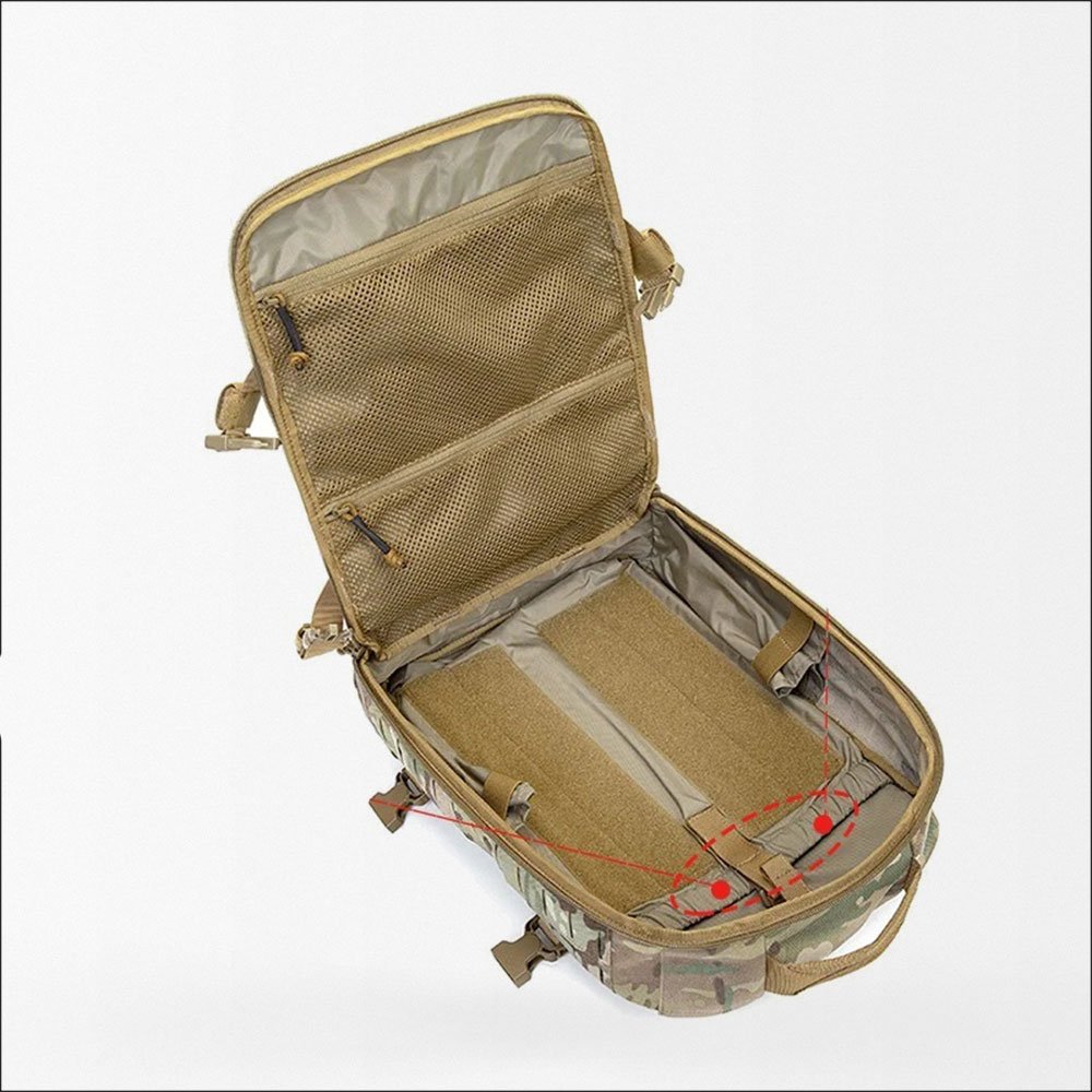 Mejora tu equipamiento táctico con nuestra mochila MOLLE, fabricada en resistente nylon 1000D. Ideal para caza y actividades al aire libre, se adapta perfectamente a la mayoría de portaplacas MOLLE. Con sistema de hidratación de 3 litros y bolsillo para placa balística, esta mochila te prepara para cualquier terreno y condición climática.