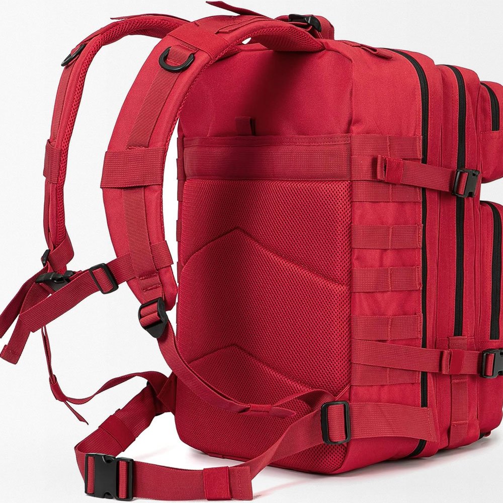 Esta mochila táctica roja de 45L ofrece una capacidad robusta, ideal para aventuras al aire libre prolongadas o uso profesional. Fabricada con poliéster de alta calidad, garantiza durabilidad en todo tipo de terrenos y condiciones climáticas. Su diseño versátil acomoda todo tu equipo, convirtiéndola en la compañera imprescindible para cualquier misión.