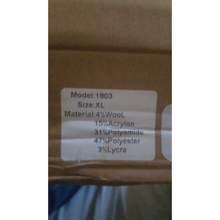 - Composición del material: 4% lana, 15% acrílico, 31% poliamida, 47% poliéster, 3% lycra spandex