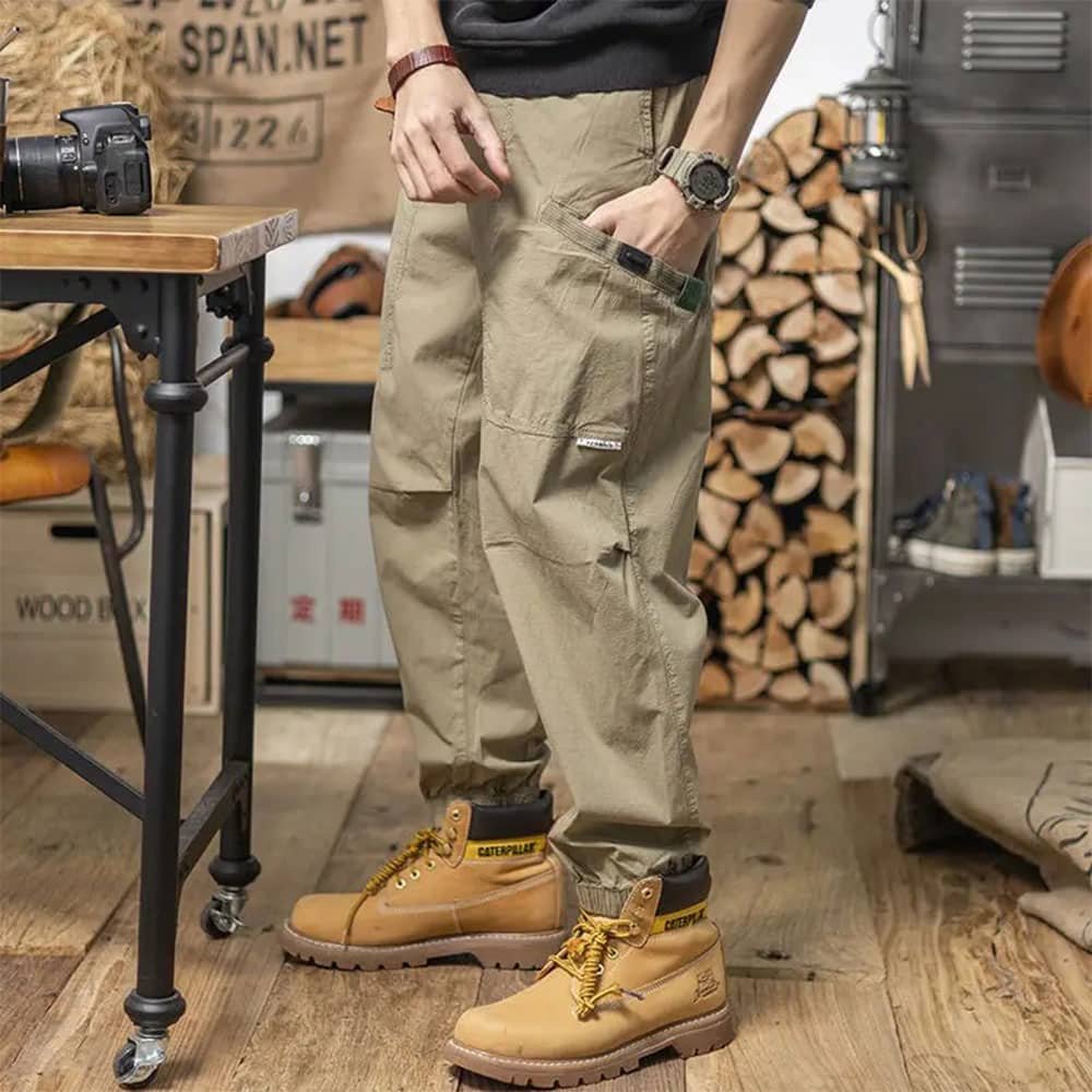 Estos pantalones cargo militares de estilo vintage son ideales para salidas casuales en primavera y verano. Fabricados en resistente poliéster broadcloth, cuentan con un corte holgado de peso medio y cierre de botones. Disponibles en varios colores, son perfectos para senderismo, camping o terrenos exigentes.