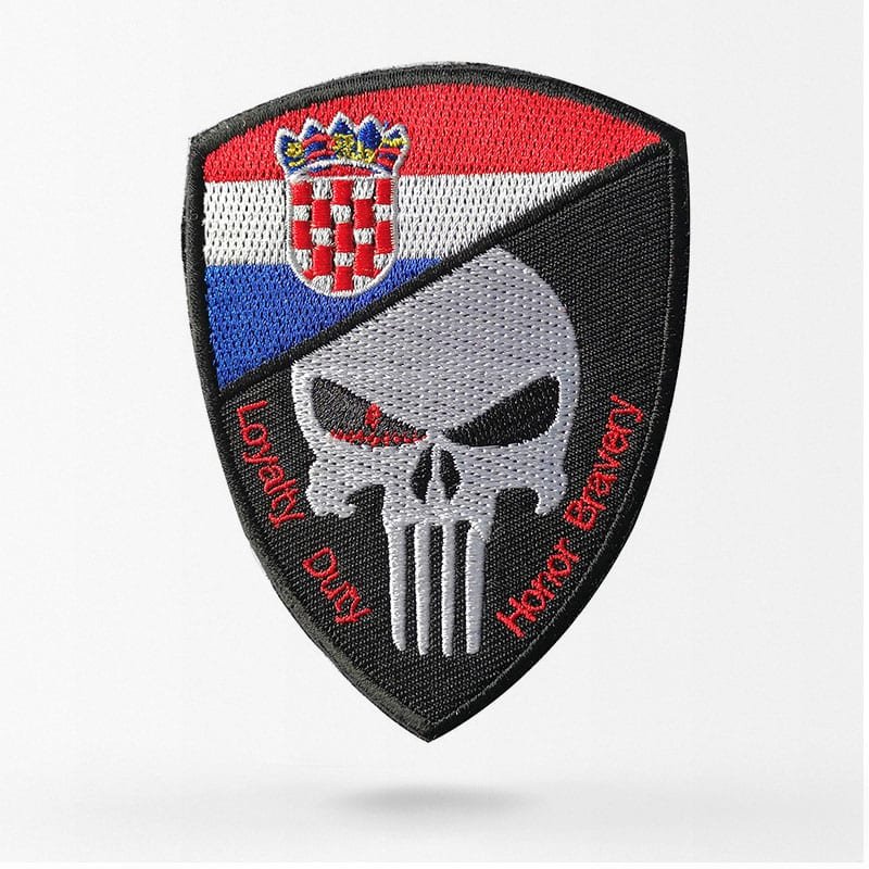 Identidad croata y espíritu táctico: parche calavera con bandera de Croacia