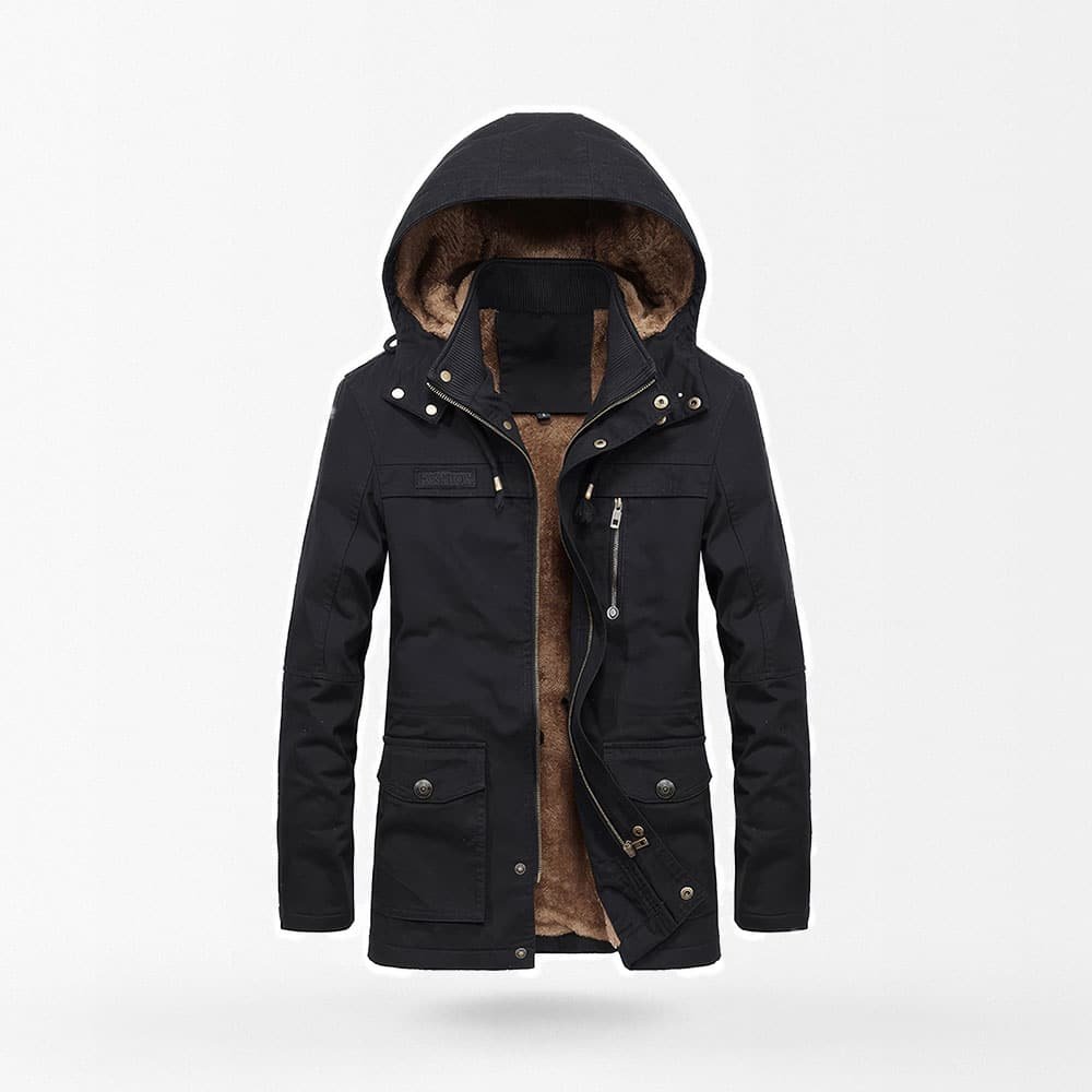 Ideal para el uso diario en los meses fríos, esta parka militar con forro de piel combina calidez y estilo. Con un diseño sobrio y capucha, ofrece un look casual y sofisticado. El grosor del forro polar y el relleno de algodón suave aseguran confort en cualquier clima.