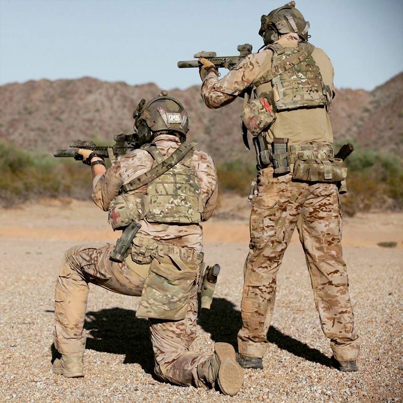 Al enfatizar los colores claros y el mínimo contraste, la MultiCam Arid garantiza la adaptabilidad a las variadas texturas y tonos de los entornos desérticos, desde los afloramientos rocosos hasta las dunas arenosas. Su diseño facilita la ocultación no sólo a corta distancia, sino también a distancia, donde la falta de cobertura hace crucial un camuflaje eficaz.
