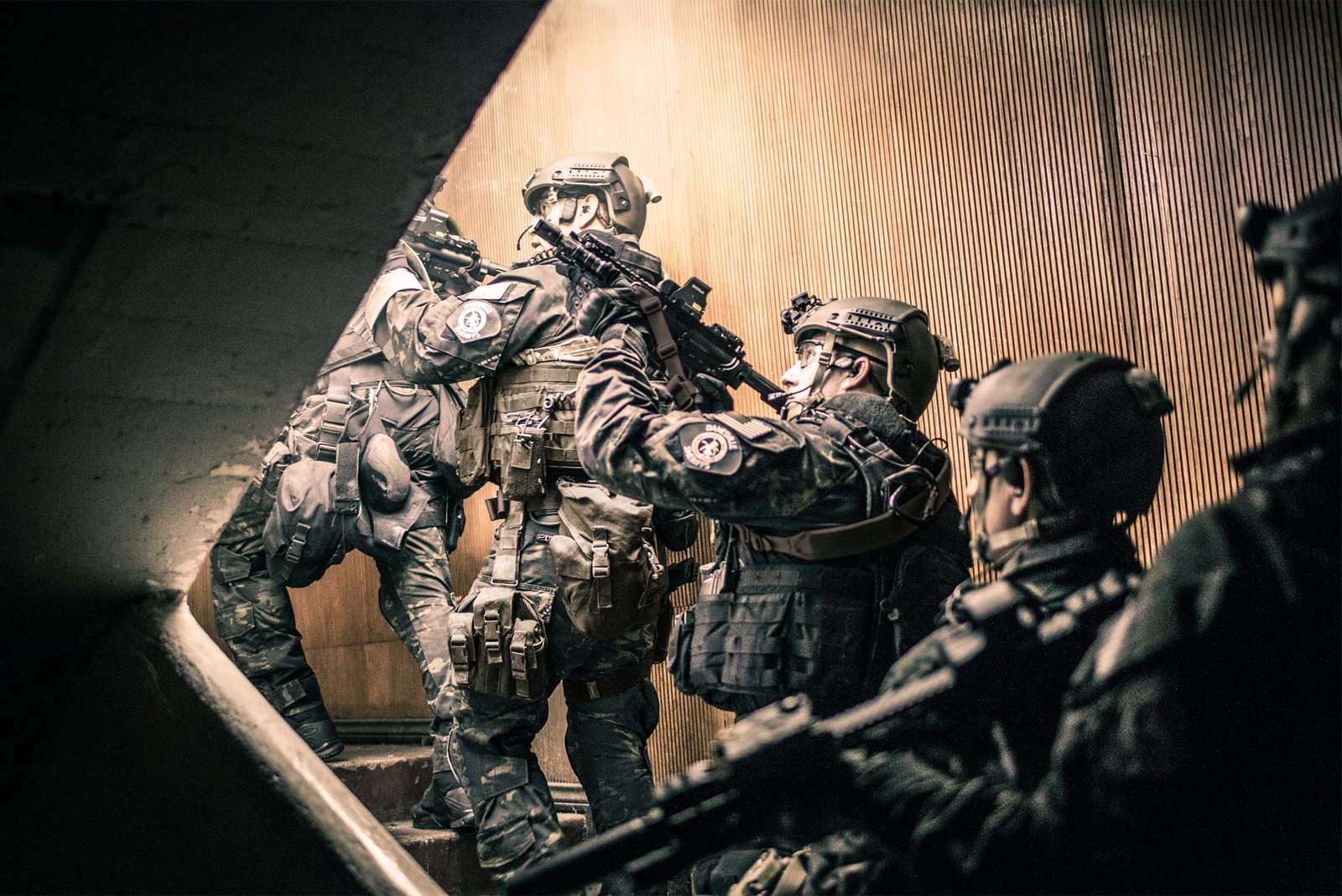 La eficacia de la MultiCam Black radica en su capacidad para difuminar la silueta del usuario en entornos poco iluminados, lo que la hace especialmente adecuada para operaciones urbanas nocturnas o en zonas de sombra. El patrón utiliza un degradado de negros y grises para imitar las texturas urbanas y las condiciones de luz, proporcionando una ventaja estratégica en operaciones de sigilo en las que mimetizarse con el fondo puede ser crucial.