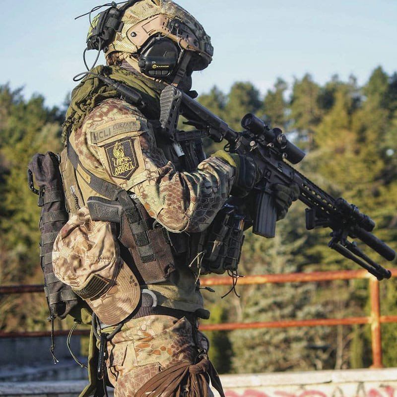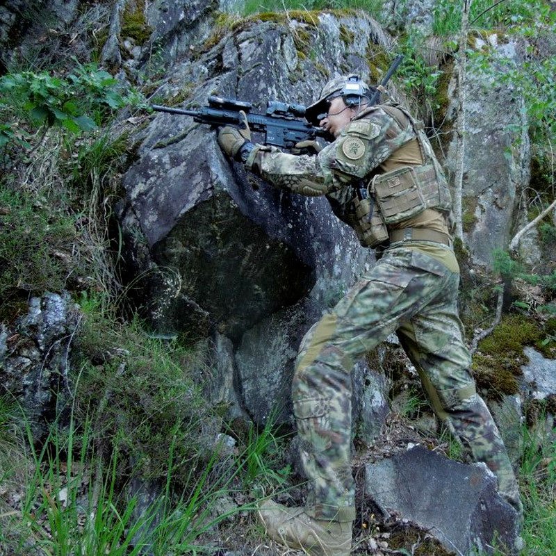 El Kryptek Mandrake destaca en entornos densamente poblados de follaje, donde su intrincada mezcla de verdes oscuros y marrones refleja el juego de sombras natural y las texturas de los suelos y la maleza del bosque. La incorporación estratégica de sombras en el patrón añade profundidad, realzando la ilusión tridimensional que perturba la silueta humana. Esta alteración es crucial para los usuarios que necesitan pasar desapercibidos, ya que reduce significativamente la detección visual mezclando al usuario con el fondo, haciéndole parecer parte del paisaje natural.