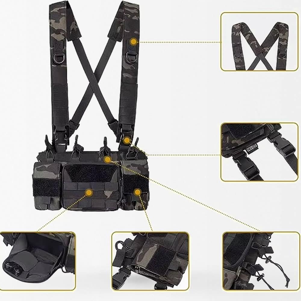 La pechera táctica en X con liberación rápida «Tigris» está fabricada con resistente nylon Cordura 500D, garantizando durabilidad y resistencia al desgaste. Perfecta para cualquier estación del año, esta chaleco táctico MOLLE es ideal tanto para aficionados al aire libre como para profesionales. Su diseño ajustable ofrece un ajuste a medida, mientras que sus múltiples compartimentos facilitan el acceso rápido al equipo esencial.