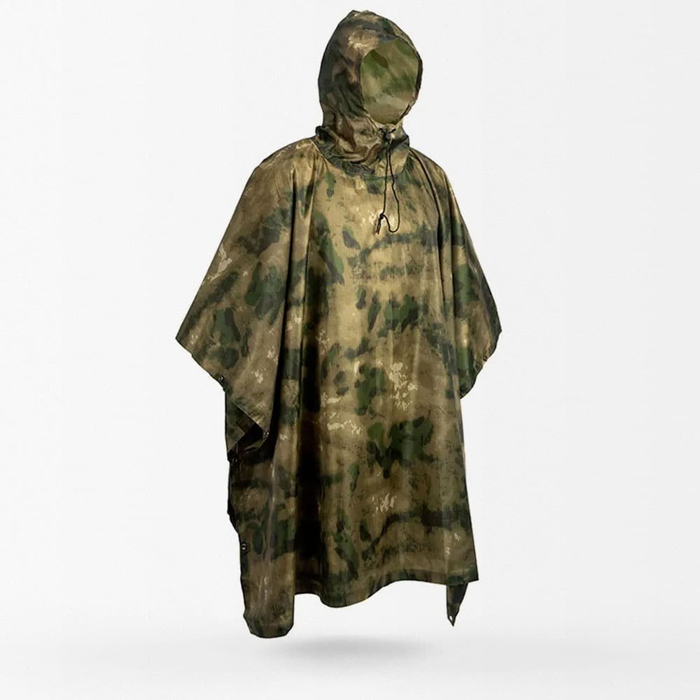 Este poncho camuflaje A-Tacs FG es ideal para senderismo y escalada en climas impredecibles. Fabricado con poliéster resistente y una capa impermeable de PU, te mantiene seco mientras se integra perfectamente en el entorno natural. Ligero y plegable, cabe fácilmente en tu mochila para aventuras durante todo el año.