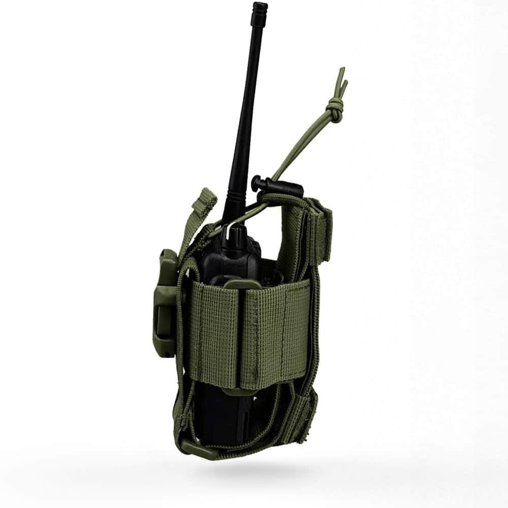 Fabricado en nylon 600D resistente, este porta radio táctico garantiza que tu dispositivo de comunicación esté siempre al alcance. Su tamaño ajustable y compatibilidad con el sistema MOLLE lo hacen ideal para chalecos militares y equipamiento outdoor. Disponible en negro, verde, tan y CP, es perfecto para profesionales que exigen fiabilidad y facilidad de uso en el campo.