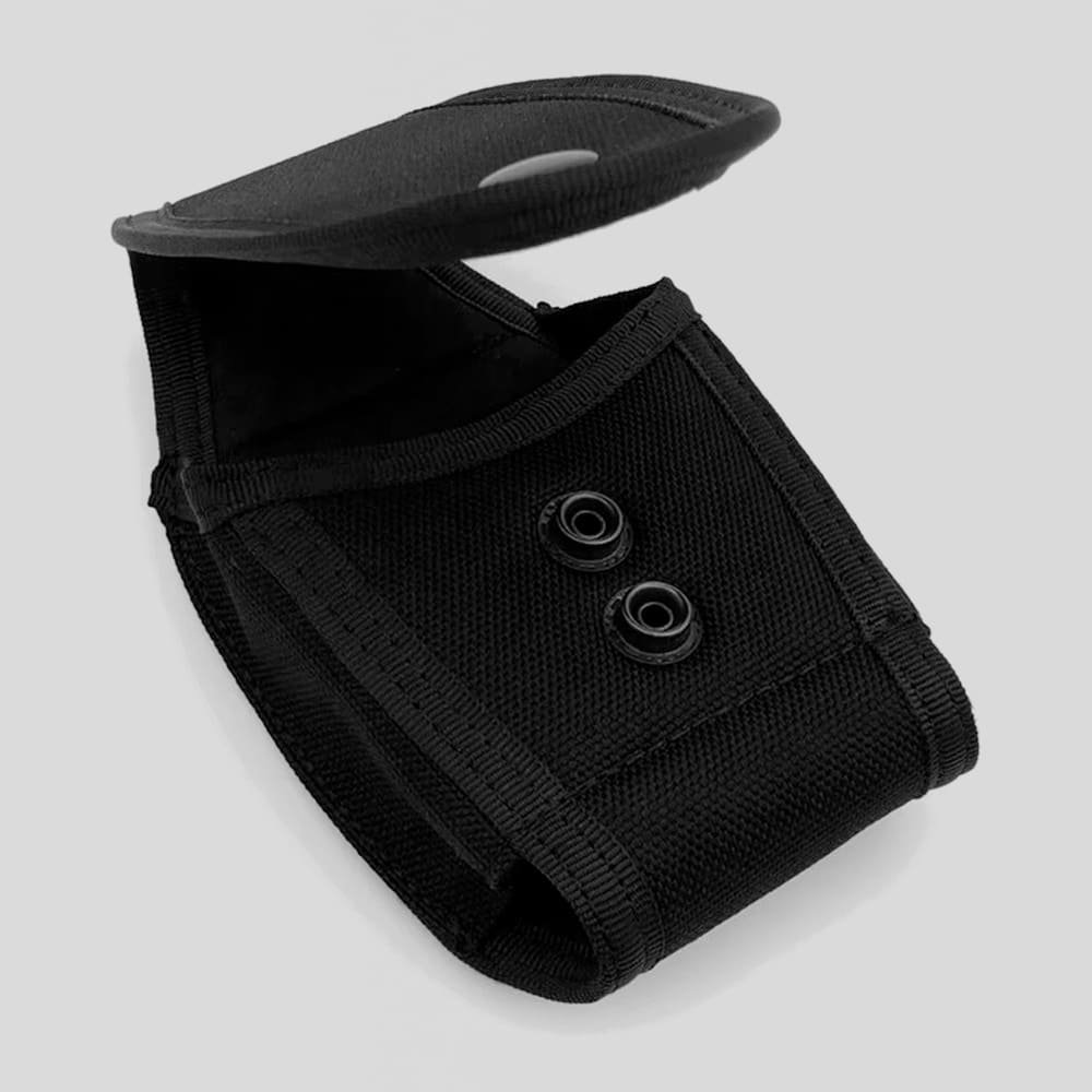 Fabricada en nylon resistente, esta funda para esposas ofrece un acceso rápido y almacenamiento seguro gracias a su doble botón a presión. Ligera y duradera, se adapta a cinturones de hasta 3.8 cm de ancho, perfecta para profesionales de seguridad que exigen eficiencia y fiabilidad en el terreno.